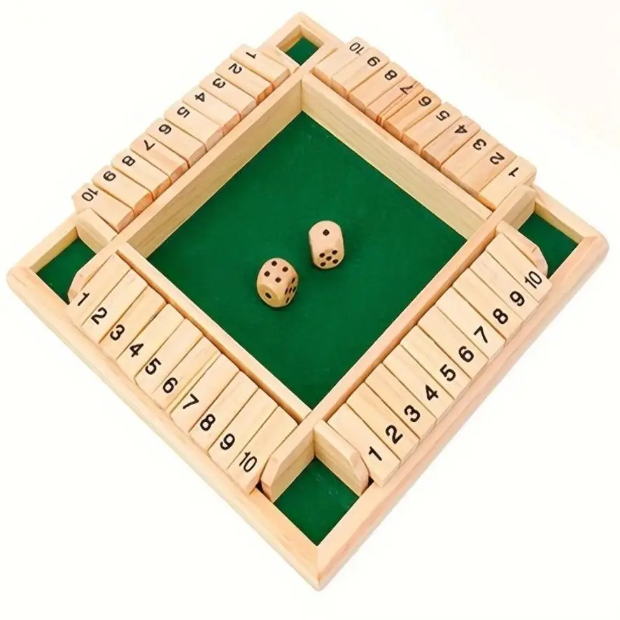 Classic 4 Sided Wooden Board Game with 2 Dice, Traditional Tabletop Pub Game Set, Portable Vintage Wooden Bar & Family Game, Classic Interactive Strategy Game for Home, Parties, Pubs & Gatherings, Fun Indoor Outdoor Tabletop Game for Adults & Kids