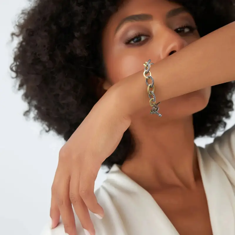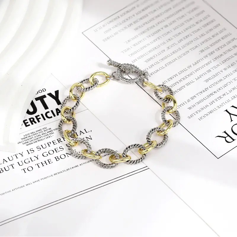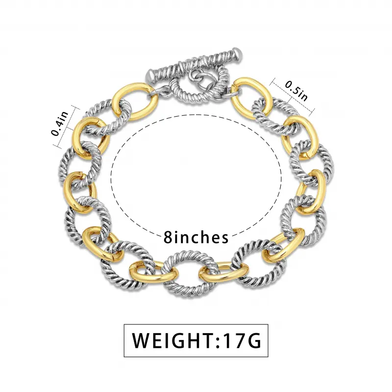Braided Wire Cable Non Tarnish Bracelet with Two-Tone Circle Chain Link Bangle for Women & Girls