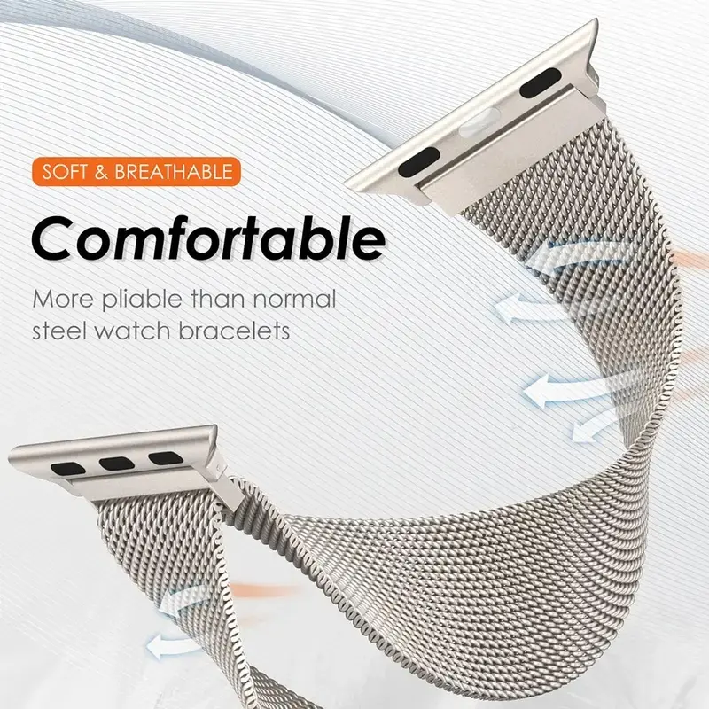 Apple Watch Band Stainless Steel Mesh Strap, Unisex Milanese Magnetic Buckle, Fits Series 1-10/se/ultra, Durable Metal, Gift for Couples