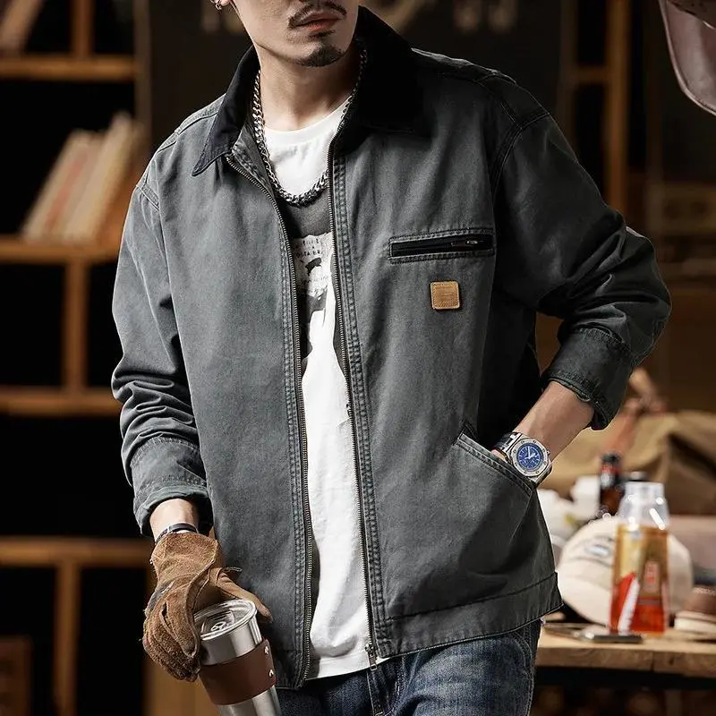 Hign-concerned Chemical:none/Craft of Weaving:Knit/Applicable Season:Autumn And Winter/Applicable Scenes: CASUAL/Place Of Origin:China (mainland)/Decoration:Pockets/Sleeve Style:regular/Model Number:FGC3829176082/Hooded:No/Type:LOOSE/Thickness:Standard/Lining Material:POLYESTER/Closure Type:zipper/Cuff style: rib sleeve/Pattern Type:Solid/Collar:Turn-down Collar/Style:American Vintage Cargo coat/Clothing Length:regular/Material:100% Cotton/Origin:Mainland China/Gender:MEN/Outerwear Type:JACKETS/Item type: outerwear & coats/CN:Fujian/Color:Grey Brown/2024 Autumn/Winter Detroit Washed Old Canvas Jackets Filt Stylemens jacket Japanese Streetwear Korean Fashion Harajuku