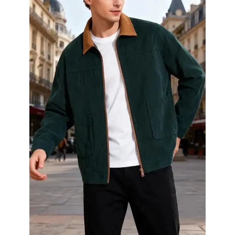 [Vintage Flair]: The jacket features a retro-inspired design, highlighted by its corduroy fabric and contrasting collar for a distinctive look.