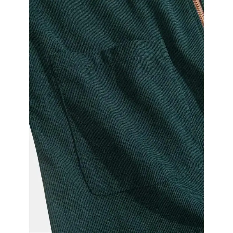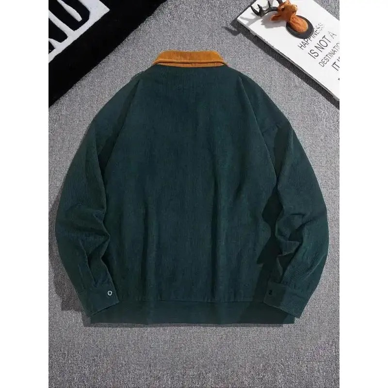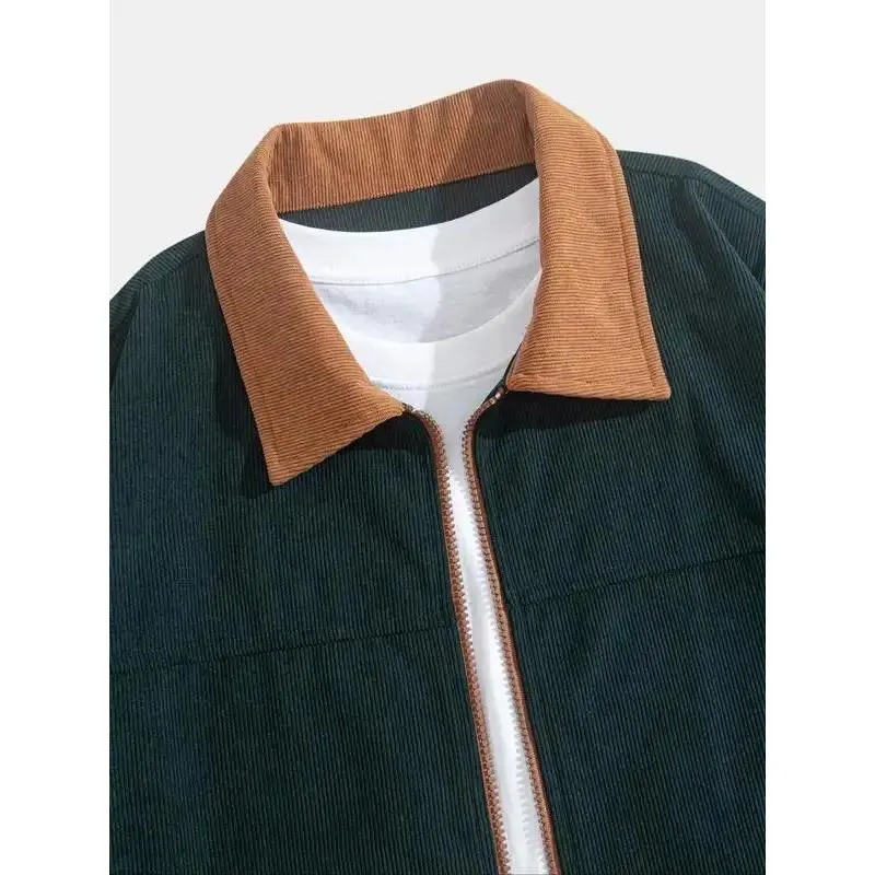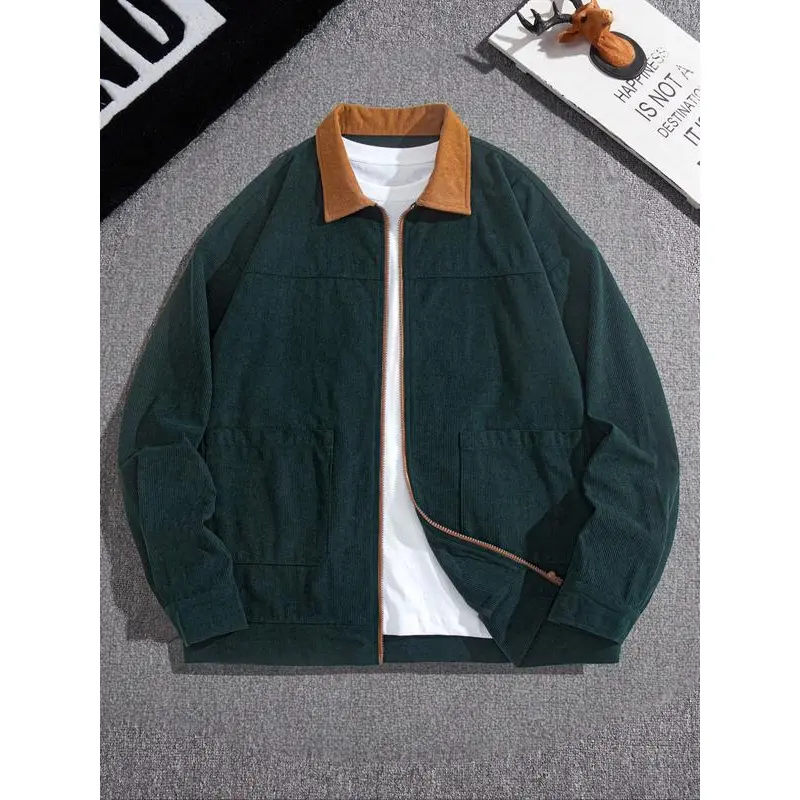 Men's Fashion Vintage Corduroy Jacket, Casual Loose Fit Colorblock Collar Design, Perfect for Outdoor Leisure & Trendy