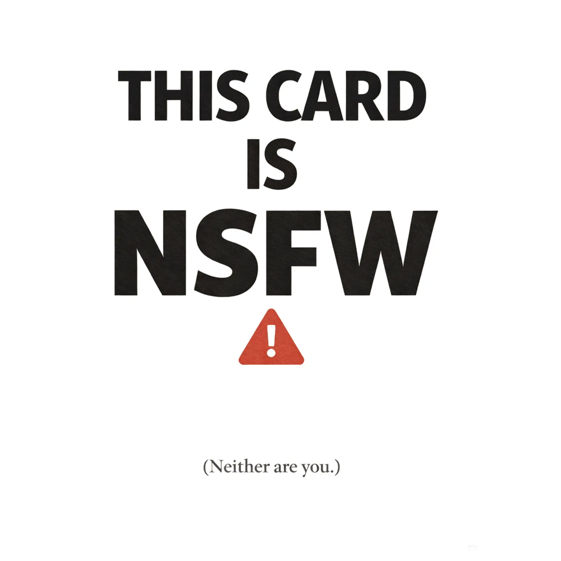 The ultimate reality check delivered with bold humor. This minimalist card features a warning label that applies to both the card and the recipient—because let's be honest, neither of you are safe for work.