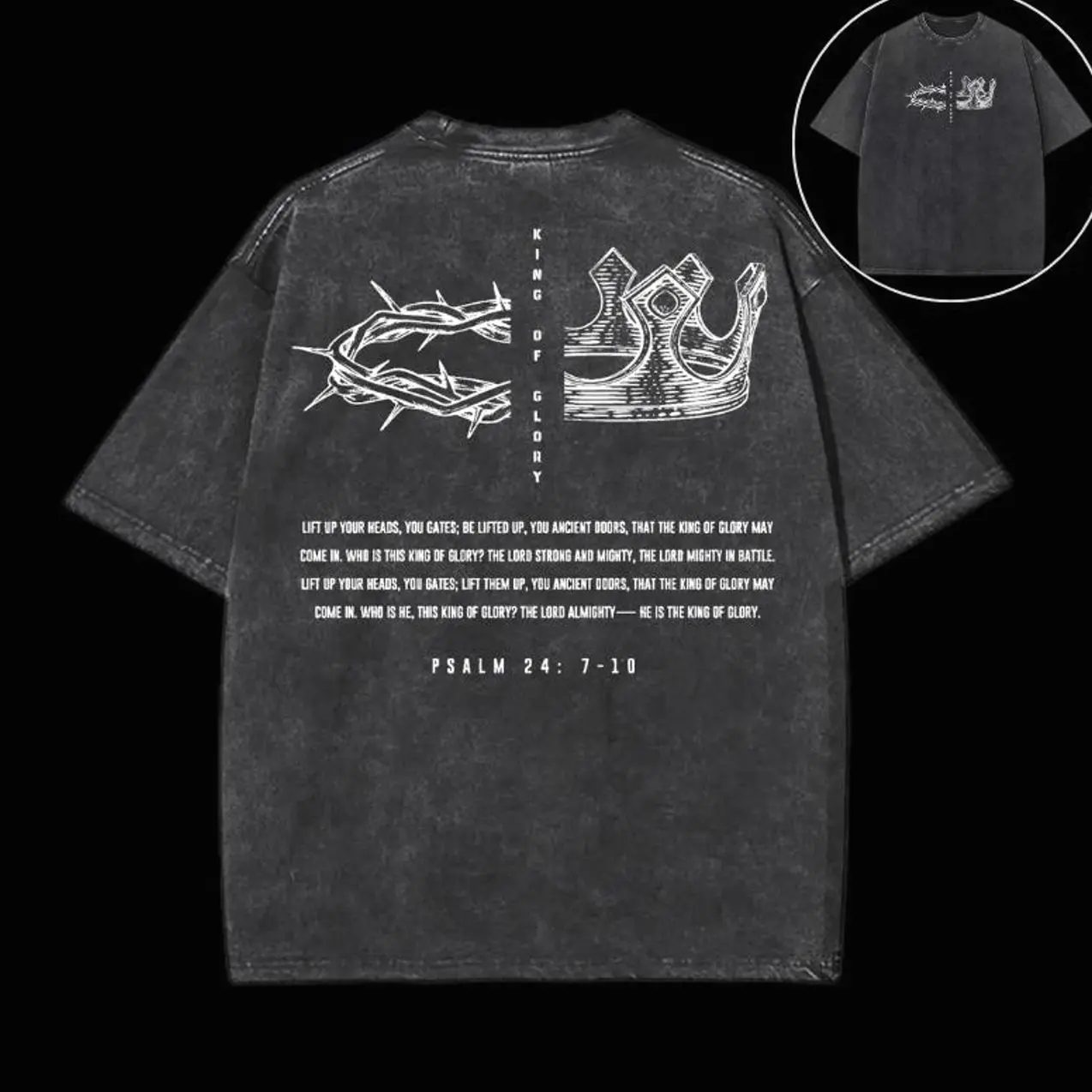 King Of Glory Washed T-Shirt, Vintage Washed T-shirt, Faded Graphic Tee, Retro Style Shirt, Classic Shirt, Vintage Top, Oversized Washed Cotton Tee for Men and Women TK2