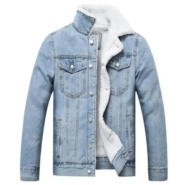 Men's Fleece Jean Jacket Winter Cotton Sherpa Lined Denim Trucker Jacket