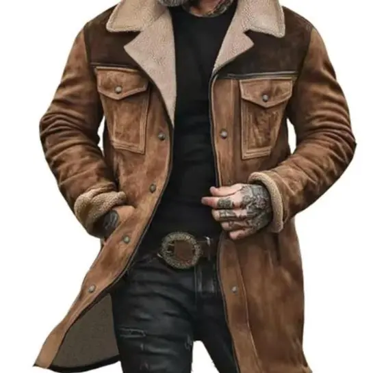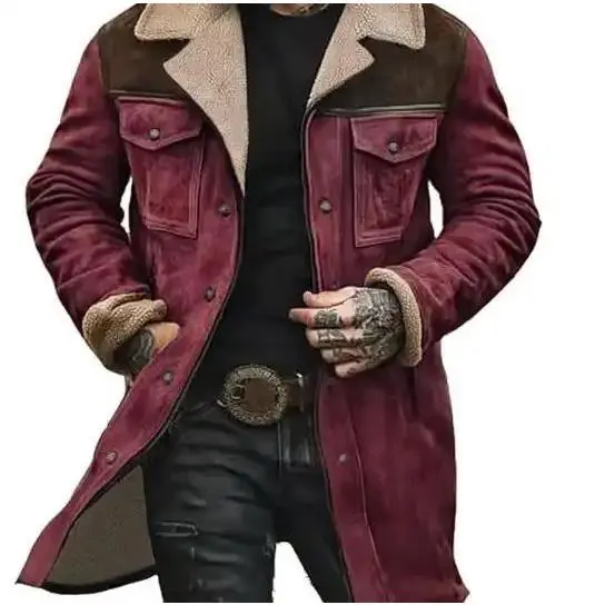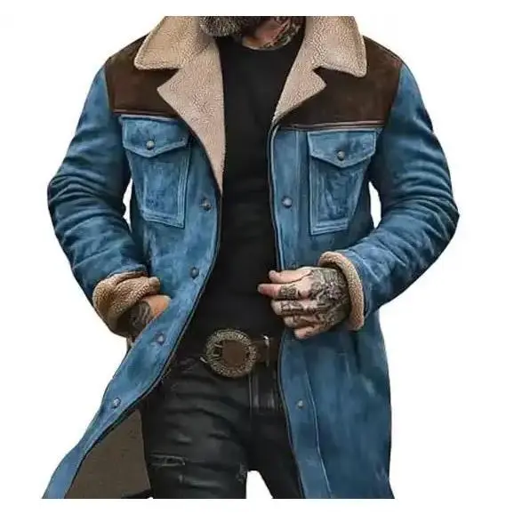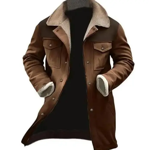 Mens Western Cowboy Jacket Vintage Suede Jacket Long Trench Coats Zip Up Plush Collar Cowboy Peacoat Retro Tops Casual Menswear Fathersdaygift Soft Fleece Hoodie jacket western clothing jackets letterman ffa jacket western clothing windbreakers Leather