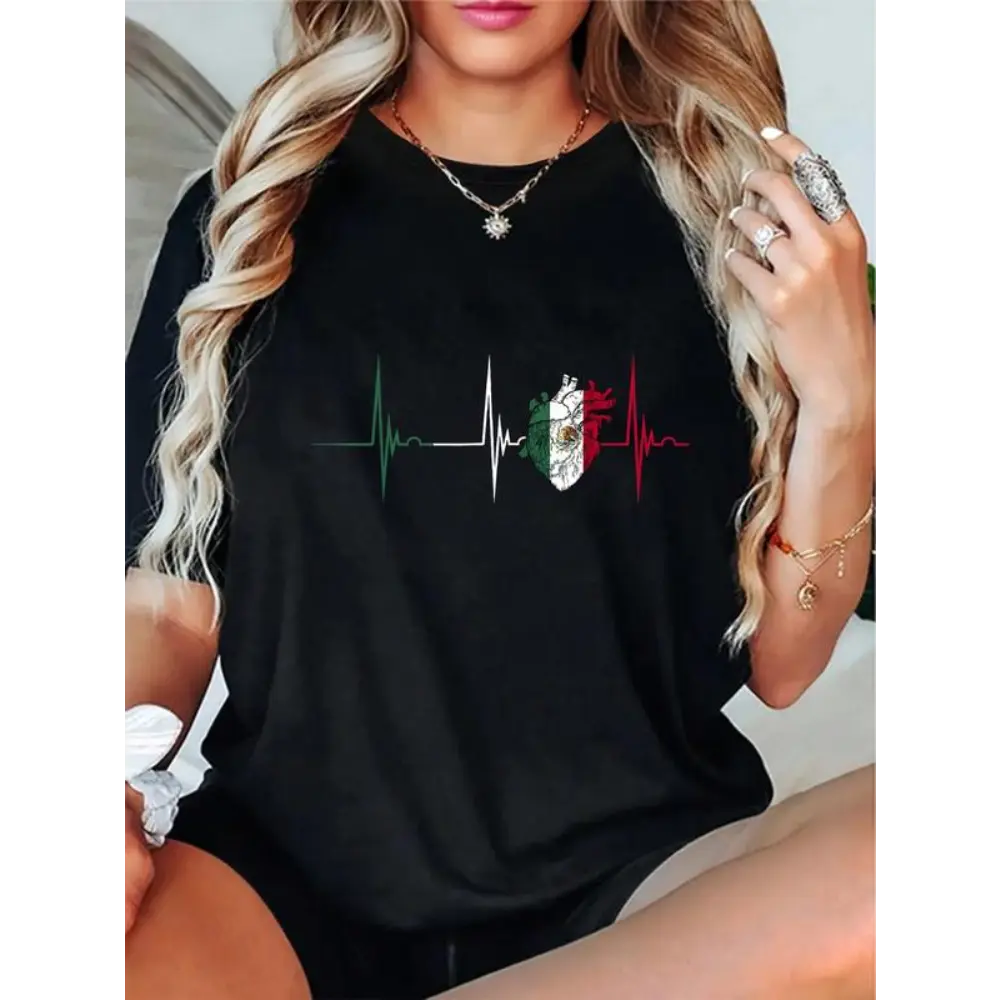 Mexico Heart Mexico Flag Heartbeat EKG Pulse Mexican Pride T-Shirt