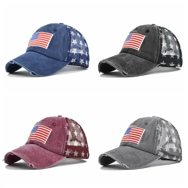 [ POPULAR PRODUCTS ] American Flag Ponytail Baseball Cap – Distressed Trucker Hat for Women, Criss Cross Pony Cap with Mesh Back, Patriotic Adjustable Summer Hat