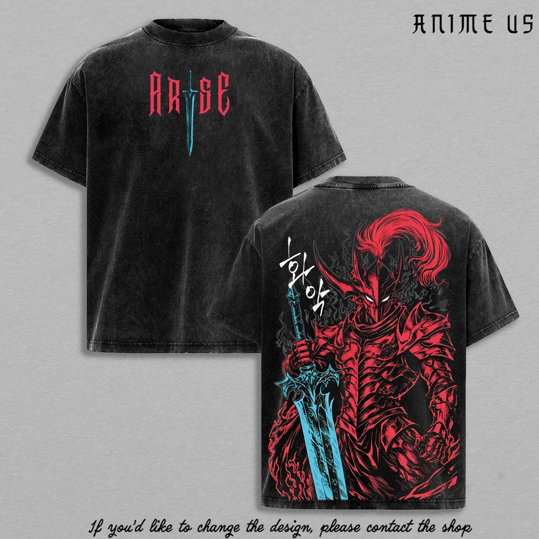 5. Igris Solo Leveling Shirt Blood Red Commander Igris Anime Vintage Washed Oversized Graphic Tee Shadow Army Knight Sung Jin Woo Anime Shirt