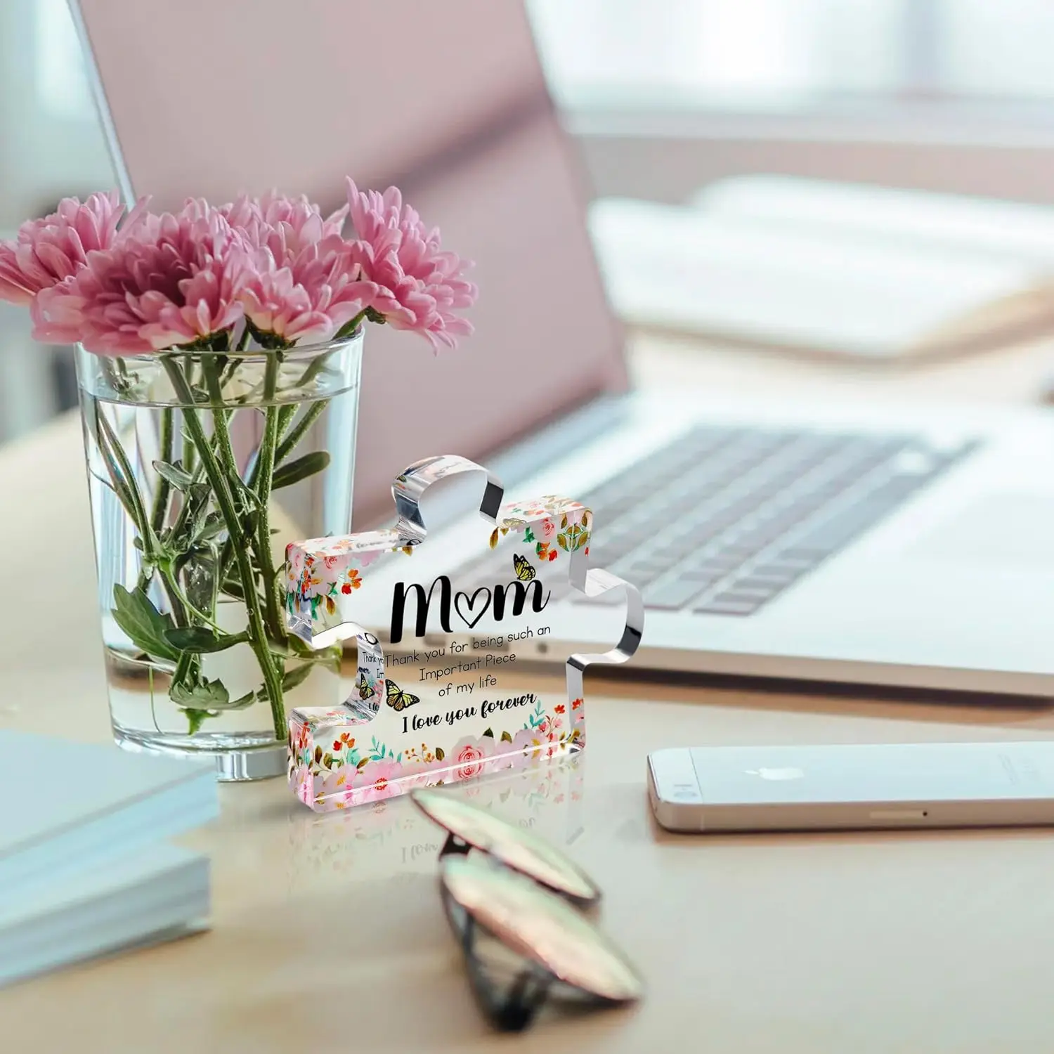 Our fancy mom birthday gift comes in an eye-catching puzzle piece design that features beautiful lettering and cute details, turning this piece into a focal point on your desk or bookshelf.