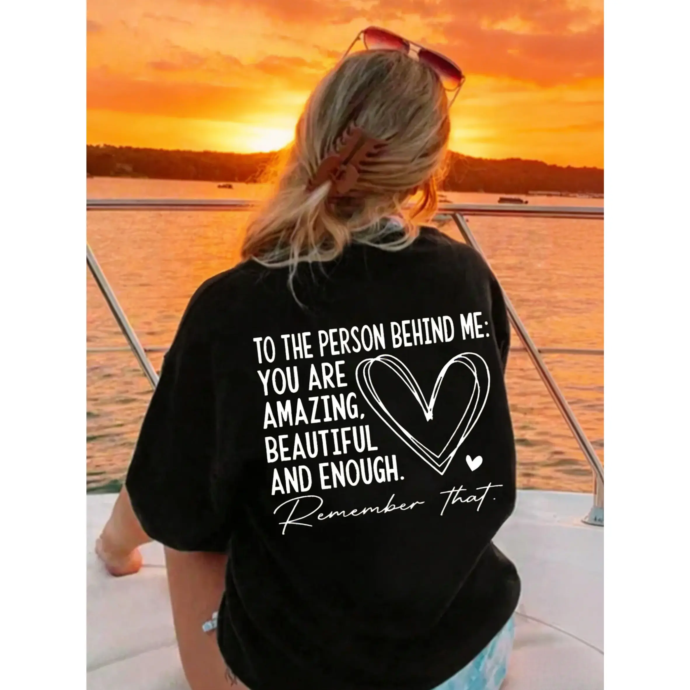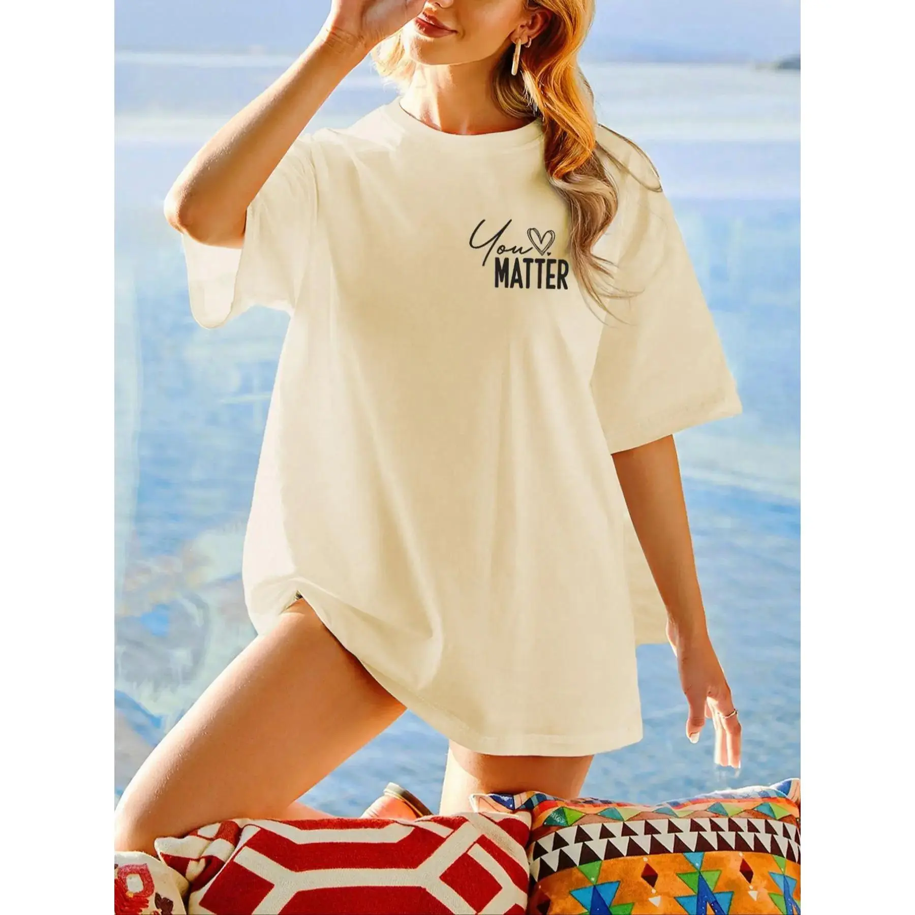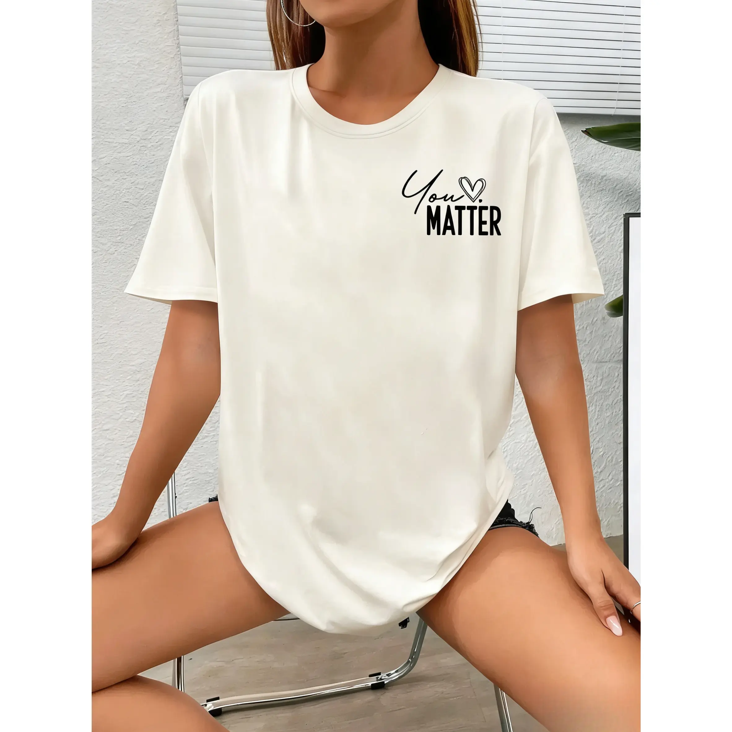 Featuring a playful letter and heart print design, this tee adds a sweet yet stylish touch to your everyday look.The drop shoulder and half sleeve silhouette create a relaxed, slightly oversized feel, while the classic round neck keeps it versatile and easy to wear.Perfect for daily wear, summer outings, or casual meetups, this piece brings a light, feminine vibe that pairs effortlessly with jeans, shorts, or skirts for a comfortable and trendy outfit.
