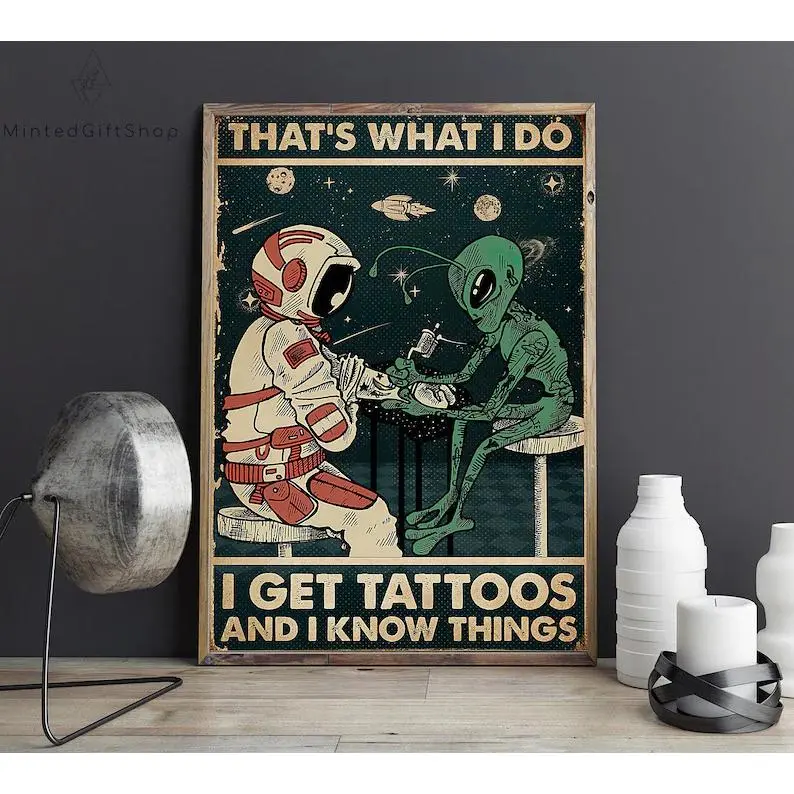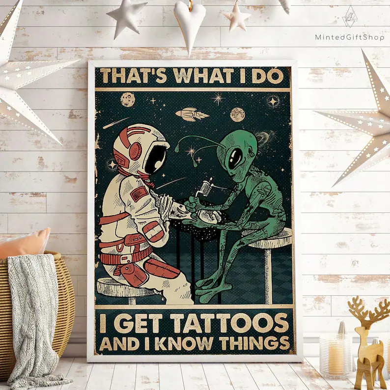 Tattoo Poster/ Alien And Astronaut Poster/ Outer Space Poster/ Alien Wall Art