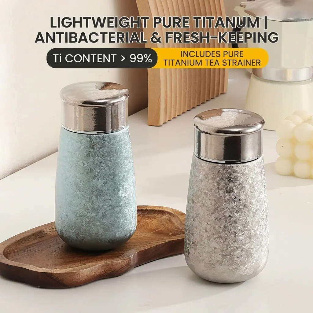 Pure Titanium Pocket Cup, High Aesthetic Mini Insulated Cup, Ice Crystal Titanium Water Bottle, Women's Flower Tea Cup, Portable and Stylish