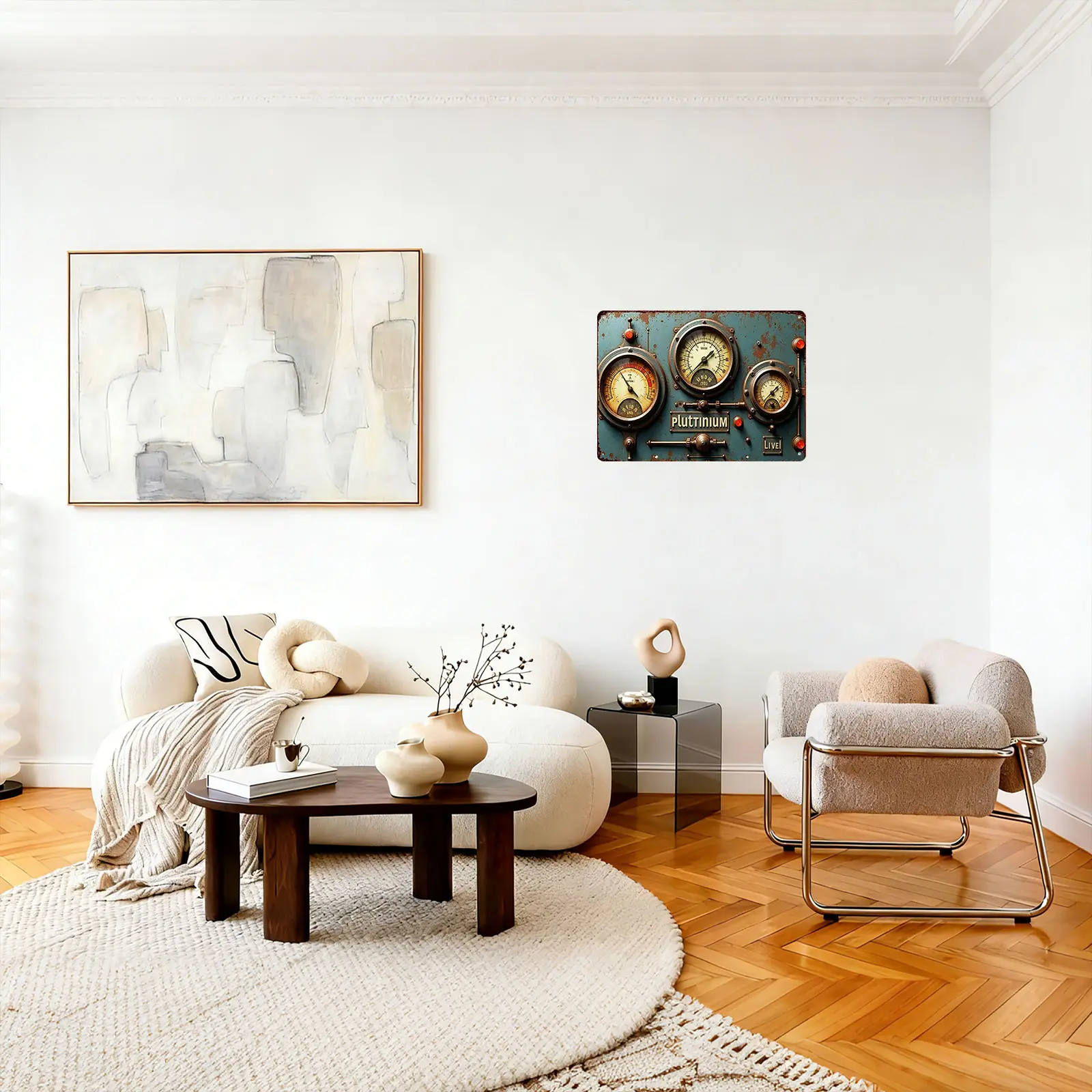 ✨ Transform your space with the "Vintage Steampunk Pluttinium Control Panel"! This 8x12 Inch Aluminum Metal Sign is perfect for your Man Cave, Garage, or Game Room. It features a retro tin poster with a rustic gauge design, adding a unique industrial touch. The sign is durable and weatherproof, ensuring long-lasting appeal. Easy to hang, it's a practical addition to any room.