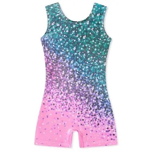 5. Girls Sparkle Gymnastics Leotards with Shorts - Mermaid Dance Unitards Active Biketards for 2-10 Years, Perfect for Ballet, Cheerleading, and Performance, Comfortable Stretch Fabric, Kids Dancewear
