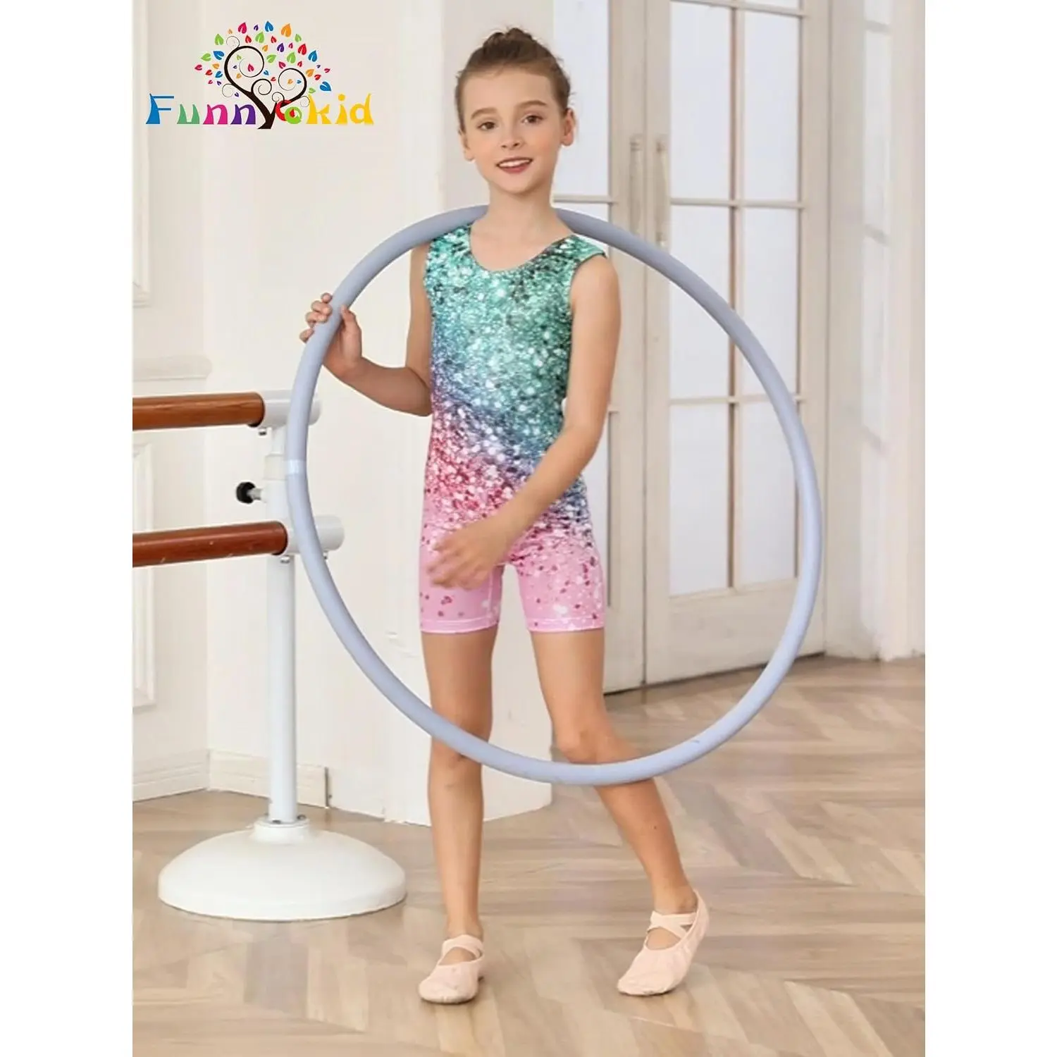 Girls Sparkle Gymnastics Leotards with Shorts - Mermaid Dance Unitards Active Biketards for 2-10 Years, Perfect for Ballet, Cheerleading, and Performance, Comfortable Stretch Fabric, Kids Dancewear