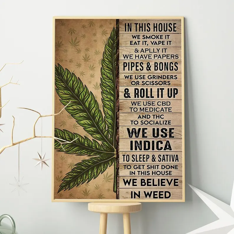 Cannabis Poster, In This House We Smoke It Eat it Vape It And Apply It Poster, Marijuana Poster, Love Weed Art, Vintage Cannabis Art.Waterproof Artwork, Ideal Gift for Family
