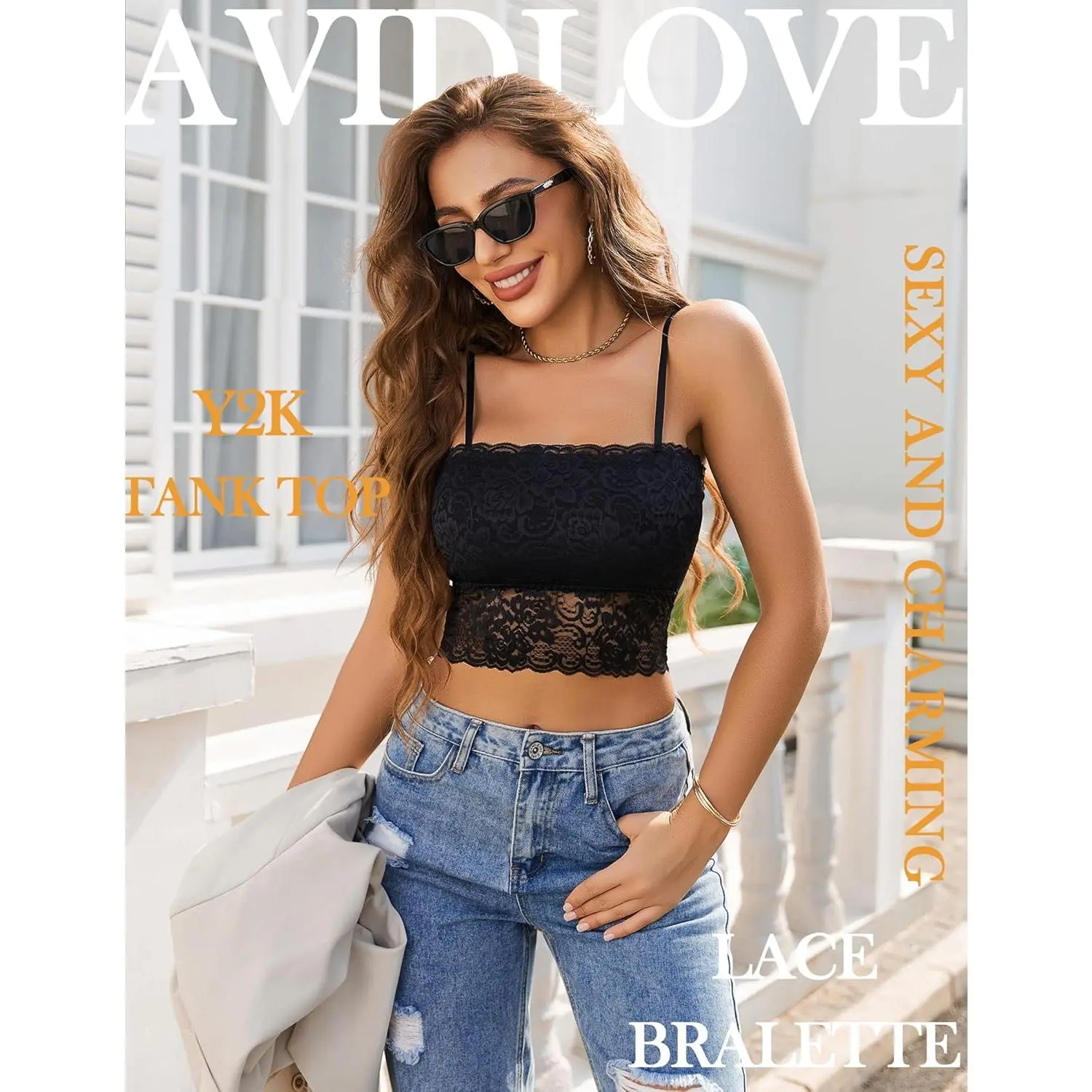 Women's Lace Spaghetti Strap Bralette Tank Top - Slim Basic Camisole Tube Top Comfortable Breathable Everyday Wear Perfect for Layering Under Shirts Casual Fashion Style