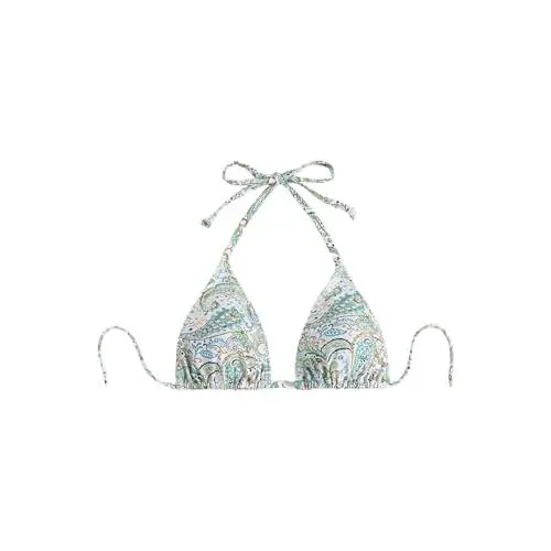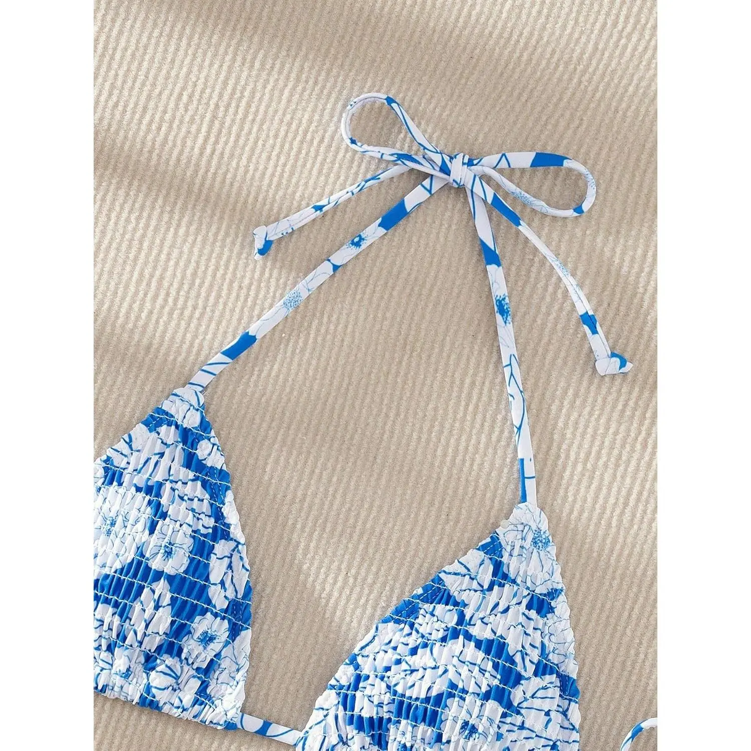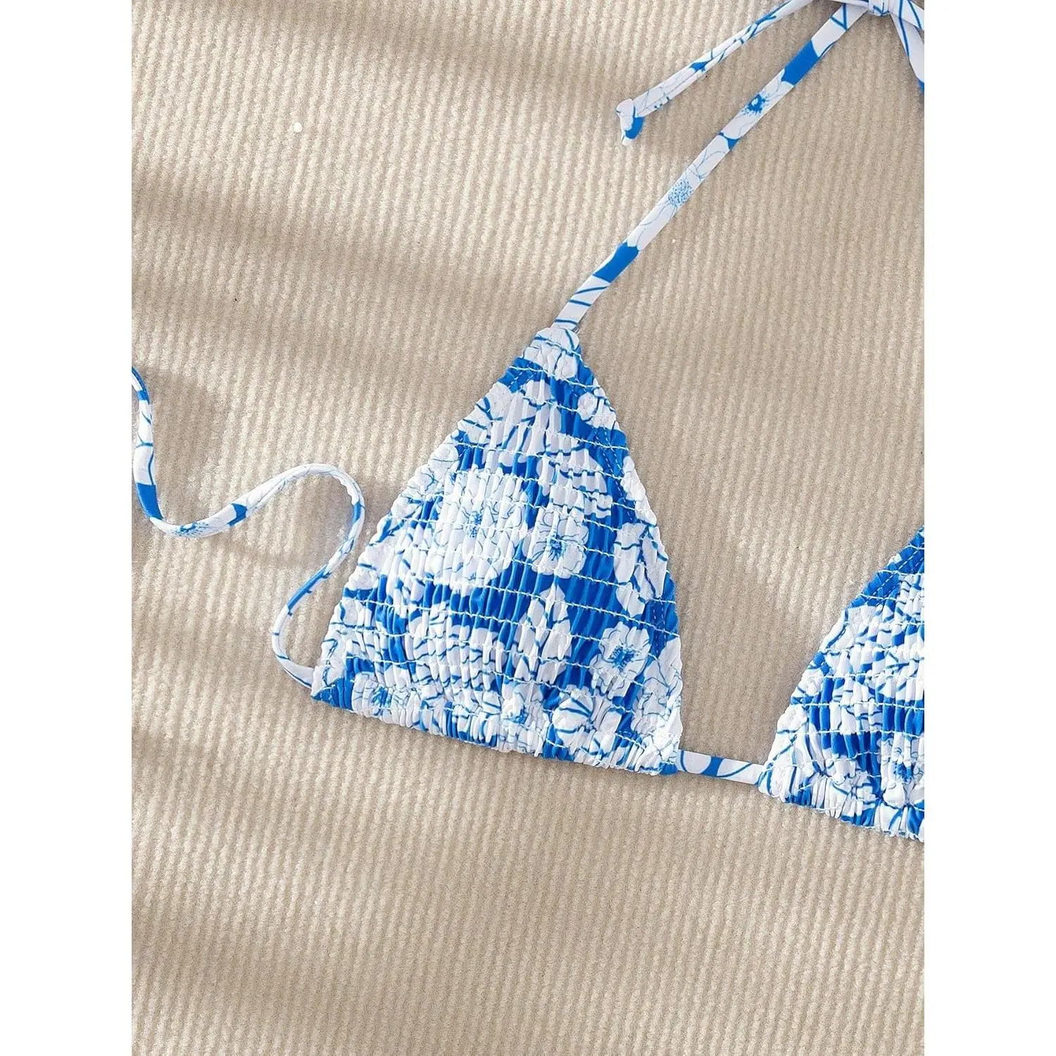 Women's Triangle Halter Bikini Top - Floral Tie Back Smocked Cute Swimsuit Top for Beach Pool Vacation Summer Swimwear Fashion