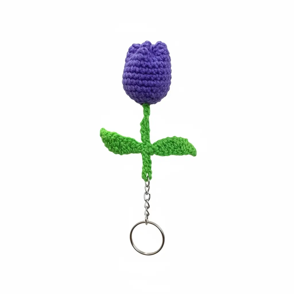 This handmade crochet purple tulip keychain is a charming flower key ring made from acrylic material. The floral pattern, crochet accents, and nature theme make it a unique and colorful accessory for women. With a detachable feature, this keychain adds a touch of whimsy to any handbag or set of keys. Made by hand, this amigurumi flower key ring is a one-of-a-kind piece that will surely brighten up your everyday routine.