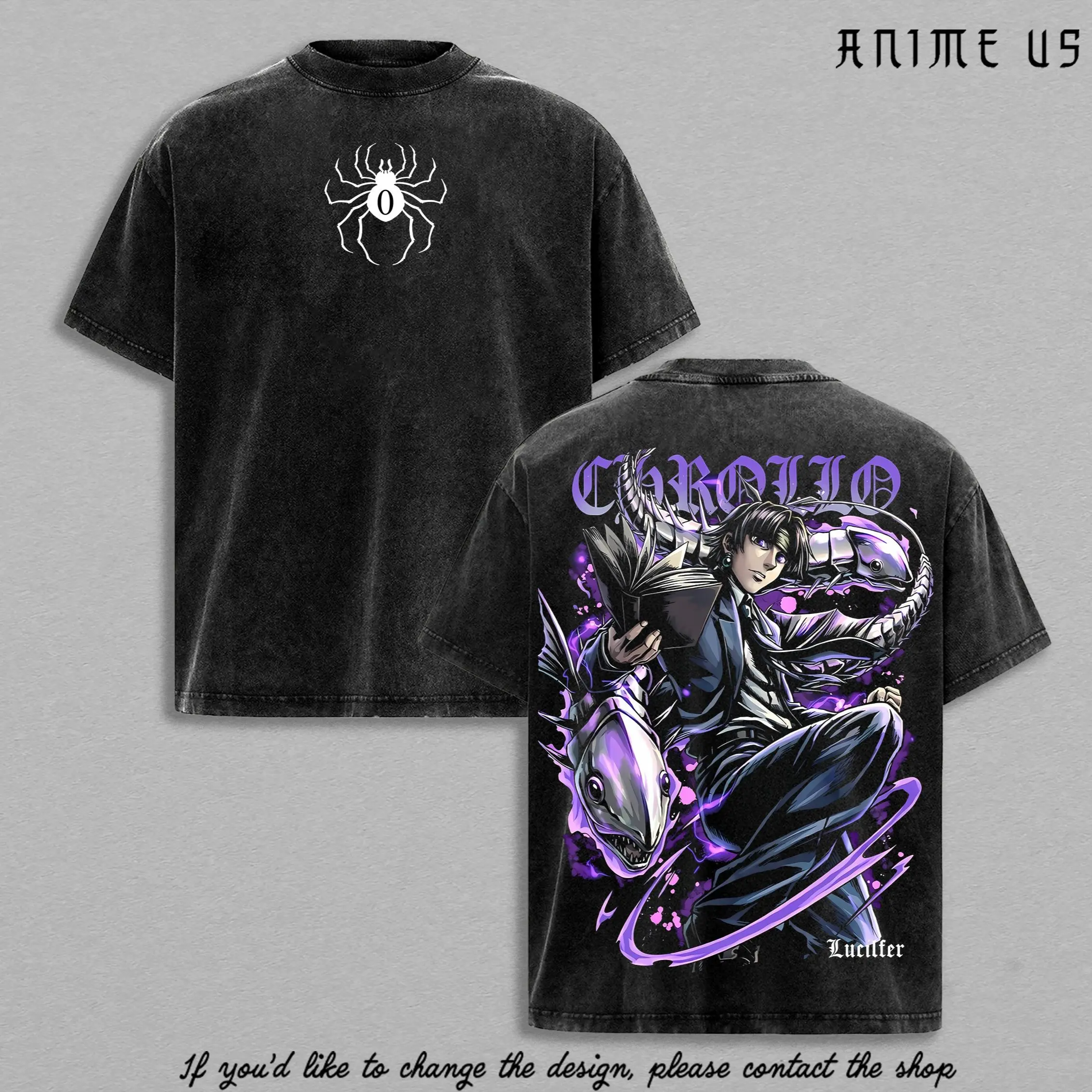 Chrollo Lucilfer Shirt Hunter x Hunter Anime Phantom Troupe Spider Leader Graphic Vintage Washed Oversized T-Shirt