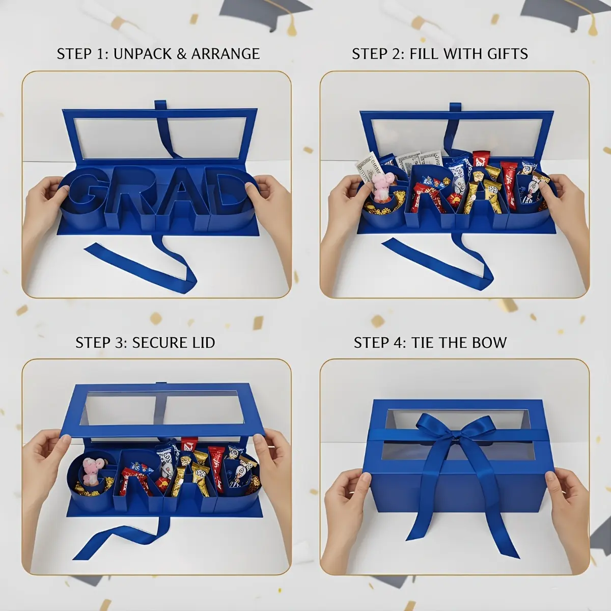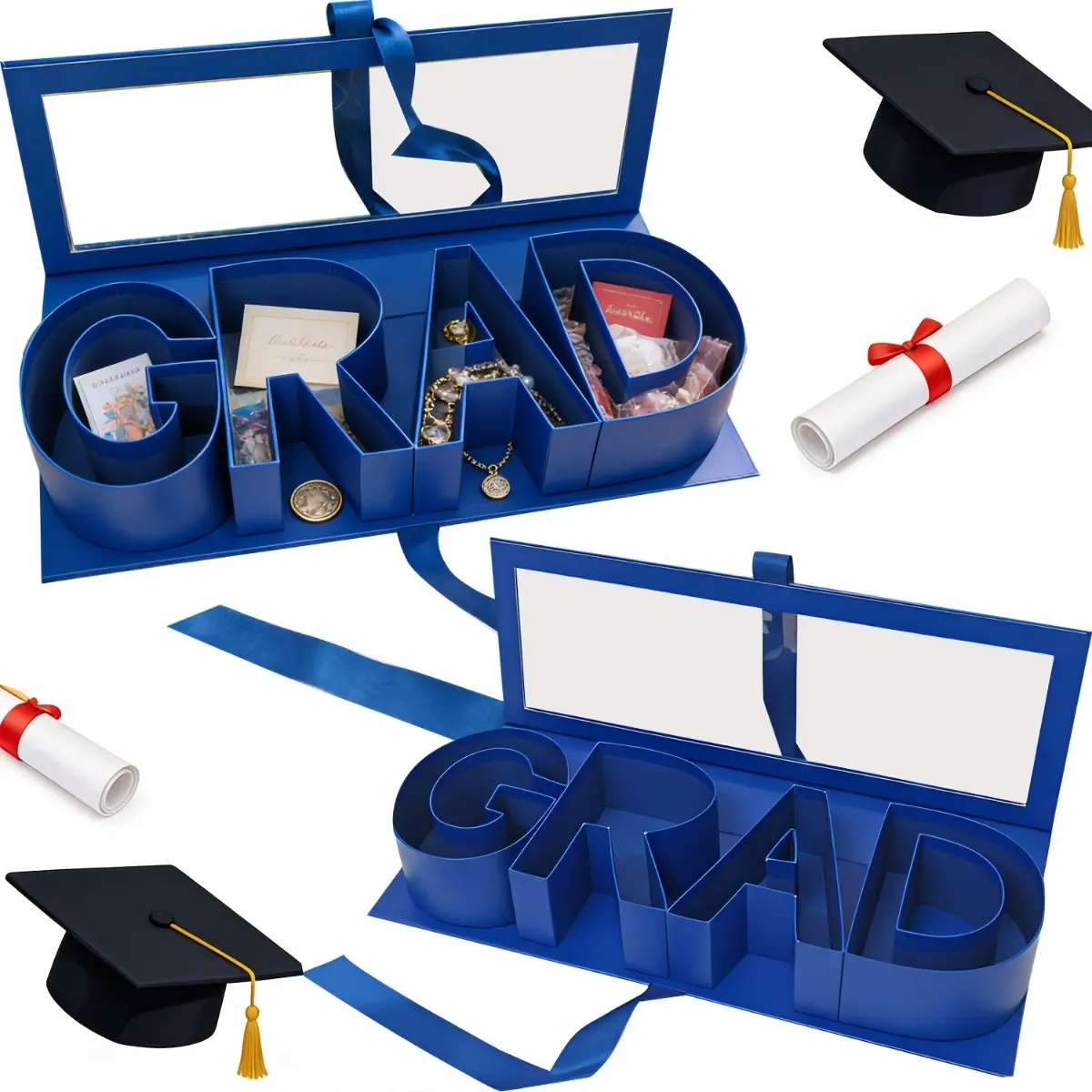 2026 Graduation Season DIY Letter Gift Box, GRAD Shaped Fillable Paper Gift Box, Graduation Bouquet Packaging Card Holder Keepsake Bracelet Box, Great for High School and College Graduation Gifts