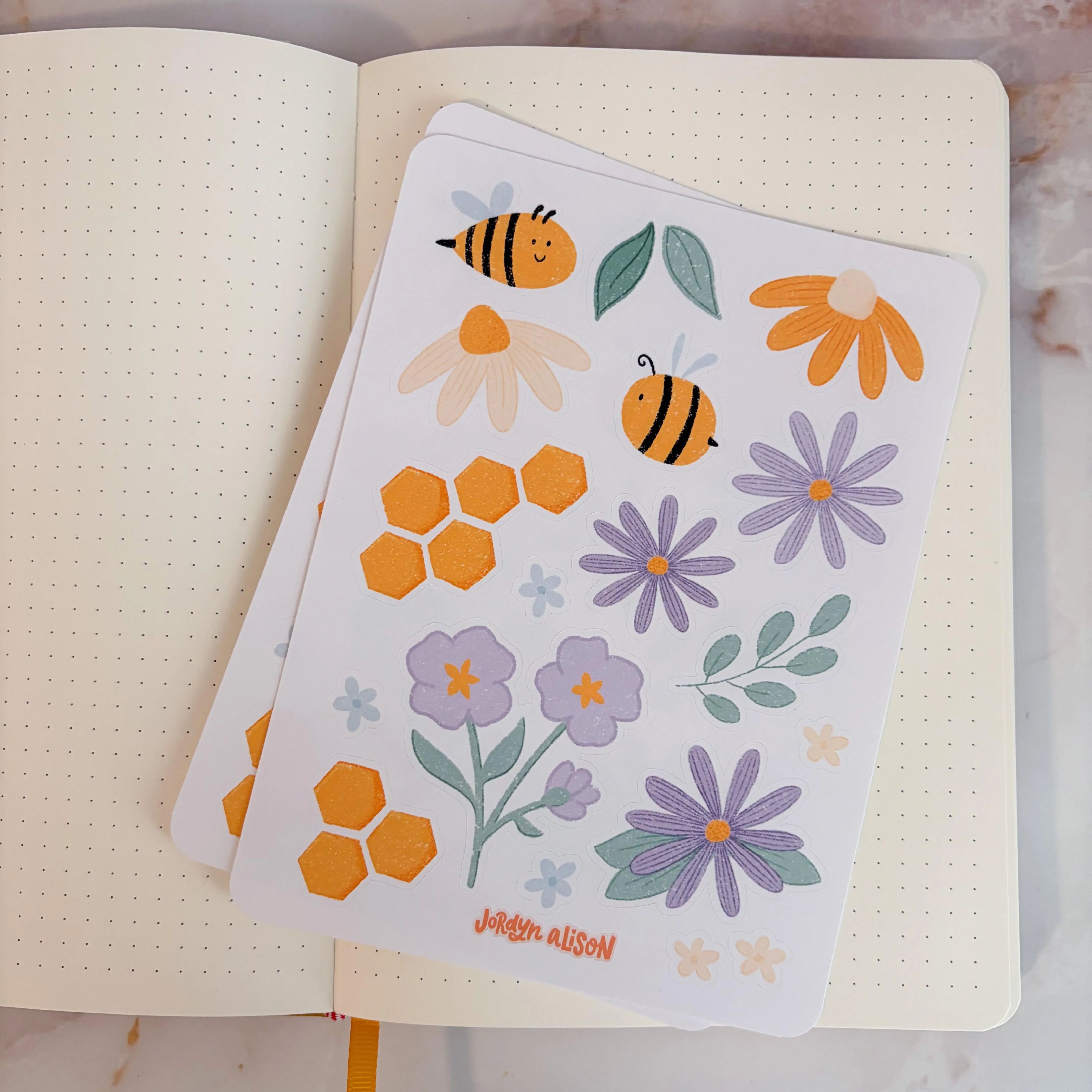 Floral Bee Sticker Sheet for Journaling, Scrapbooking