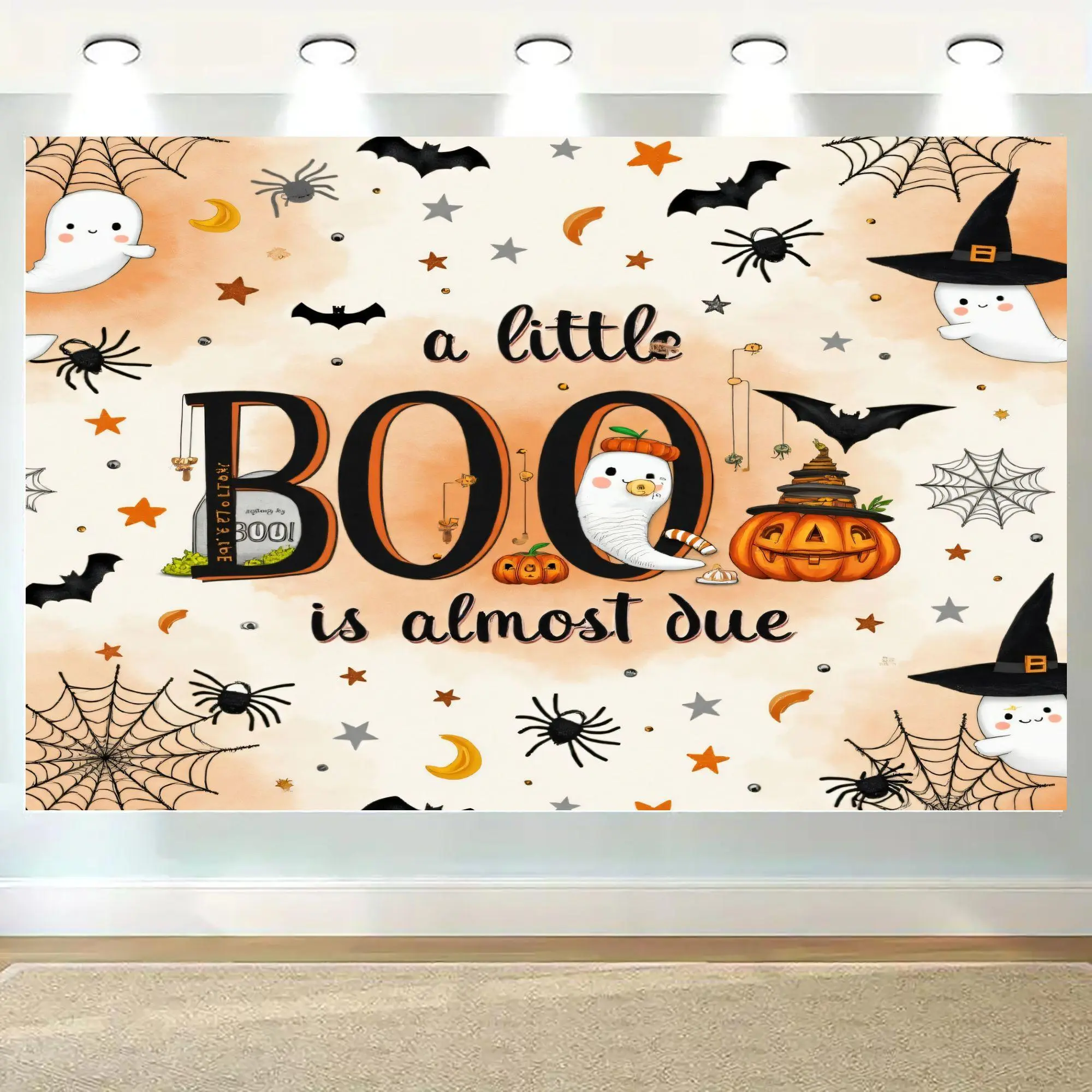 5. 2D Flat, "A Little Boo Is Almost Due" Wall Hanging Tapestry - Footprints & Decor, Horizontal/Vertical Hanging with Kit, No Installation Needed, Cute Ghosts & Owls Design Room, Christmas Halloween, Tapestries, Tapestry Wall Hanging