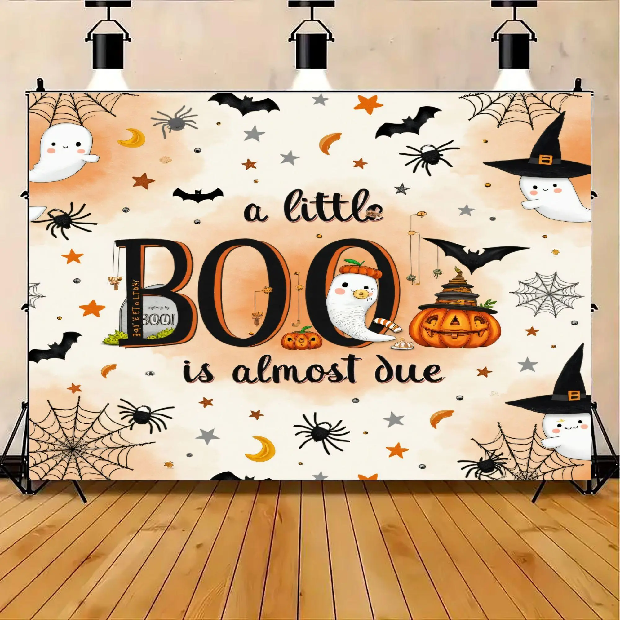 2D Flat, "A Little Boo Is Almost Due" Wall Hanging Tapestry - Footprints &  Decor, Horizontal/Vertical Hanging with Kit, No Installation Needed, Cute Ghosts & Owls Design Room, Christmas Halloween, Tapestries, Tapestry Wall Hanging