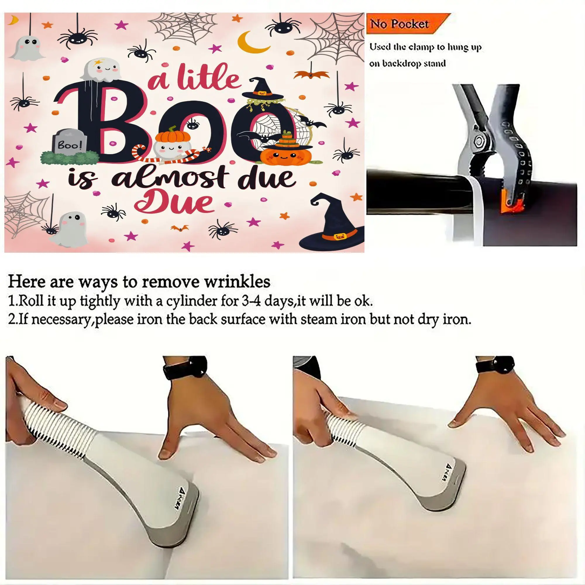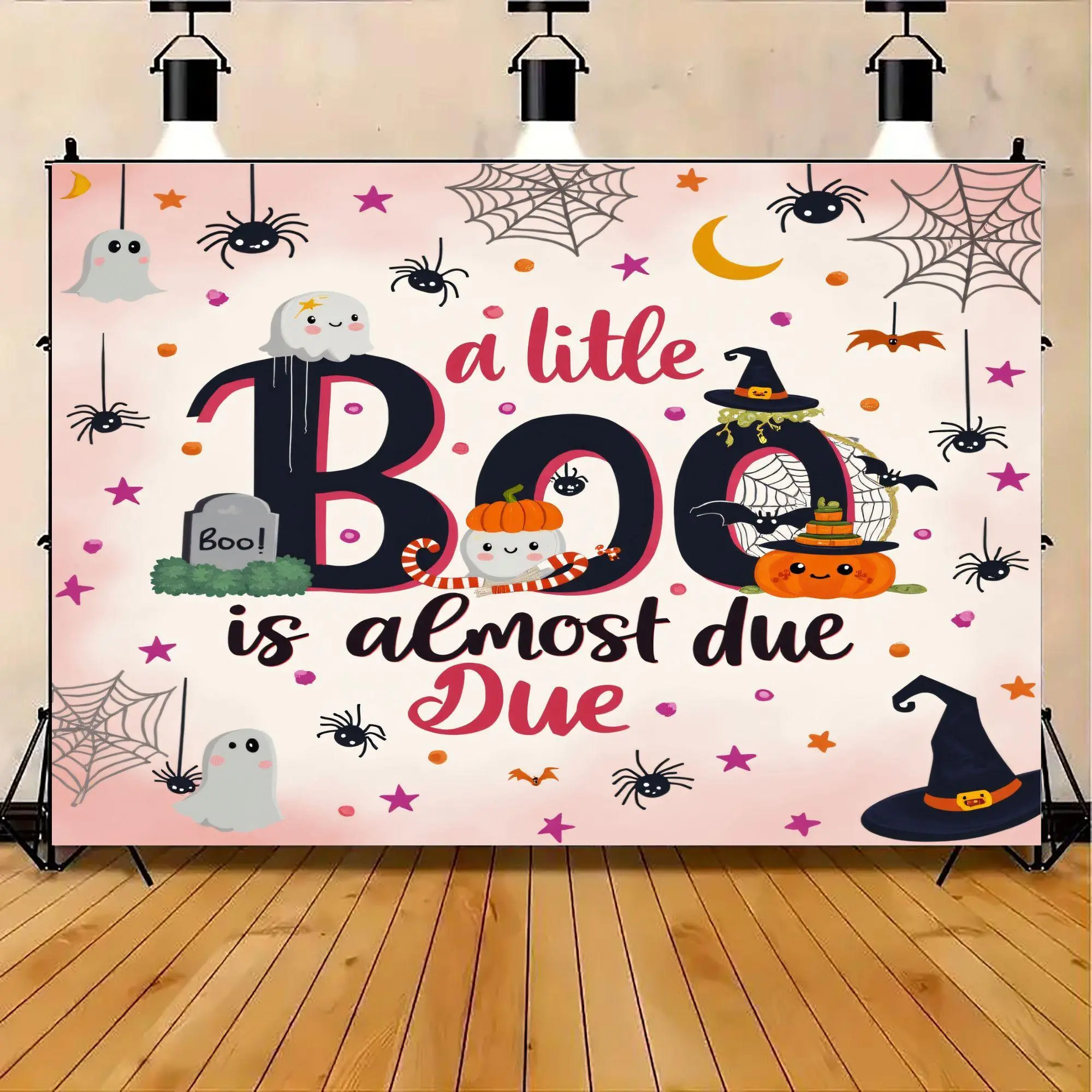 2D Flat, "A Little Boo" -Friendly Halloween Tapestry Wall Hanging - Cute Ghosts, Bats, Witches & Pumpkins with Pink Polka Dots & "Boo" Lettering - Easy Peel & Stick Installation Kit (No Tools), Party, Bedroom Decor - Soft, Tapestries, Halloween Pillow