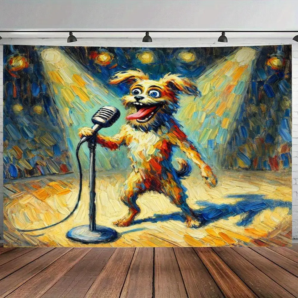Large Wall Tapestry - Funny Dog on Microphone Stage Performance, Live Show Photo Backdrop, Vibrant Orange & Yellow Design, Perfect for Living Room, Bedroom, Dorm, or Party Decor, Dorm Room Decor | Vibrant Wall Art | Soft Texture Fabric