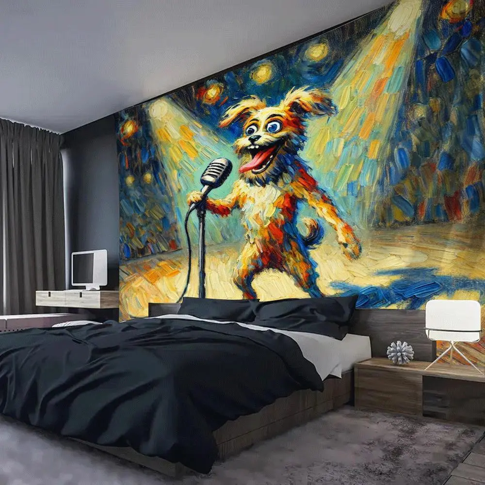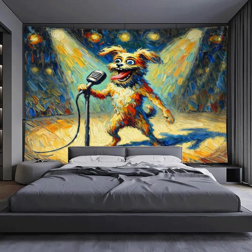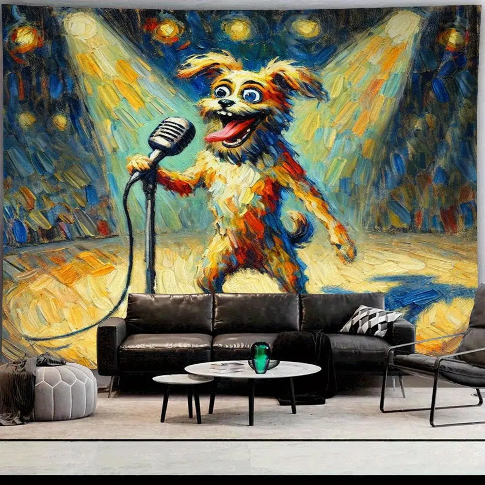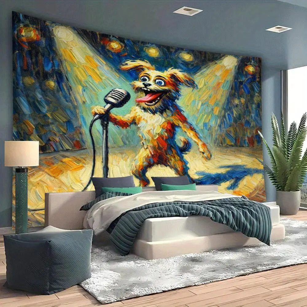 5. Large Wall Tapestry - Funny Dog on Microphone Stage Performance, Live Show Photo Backdrop, Vibrant Orange & Yellow Design, Perfect for Living Room, Bedroom, Dorm, or Party Decor, Dorm Room Decor | Vibrant Wall Art | Soft Texture Fabric