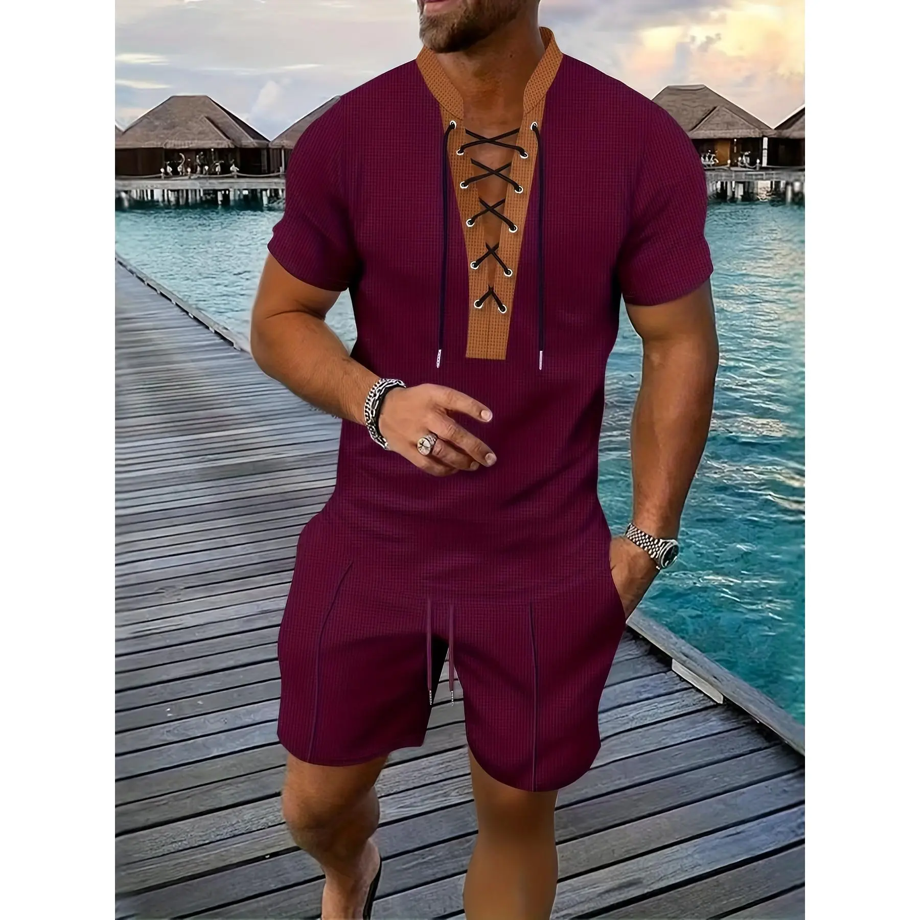 Material: Polyester Fiber (Polyester)Pattern: Solid colorIs it transparent: NoFabric: Micro-ElasticCollar Type: V-neckType: Short-sleeve T-shirt + shorts setCare Instructions: Hand Wash Or Dry CleaningStyle: RetroTop composition: 100% polyester fiberBottom composition: 100% polyester fiberWeaving Method: Knitting (Including Crocheting, Woolen Fabric)Version: RegularPrinting Type: With No Printed PatternsSeason: SummerProduct number: DX1835363Origin: Zhejiang, China