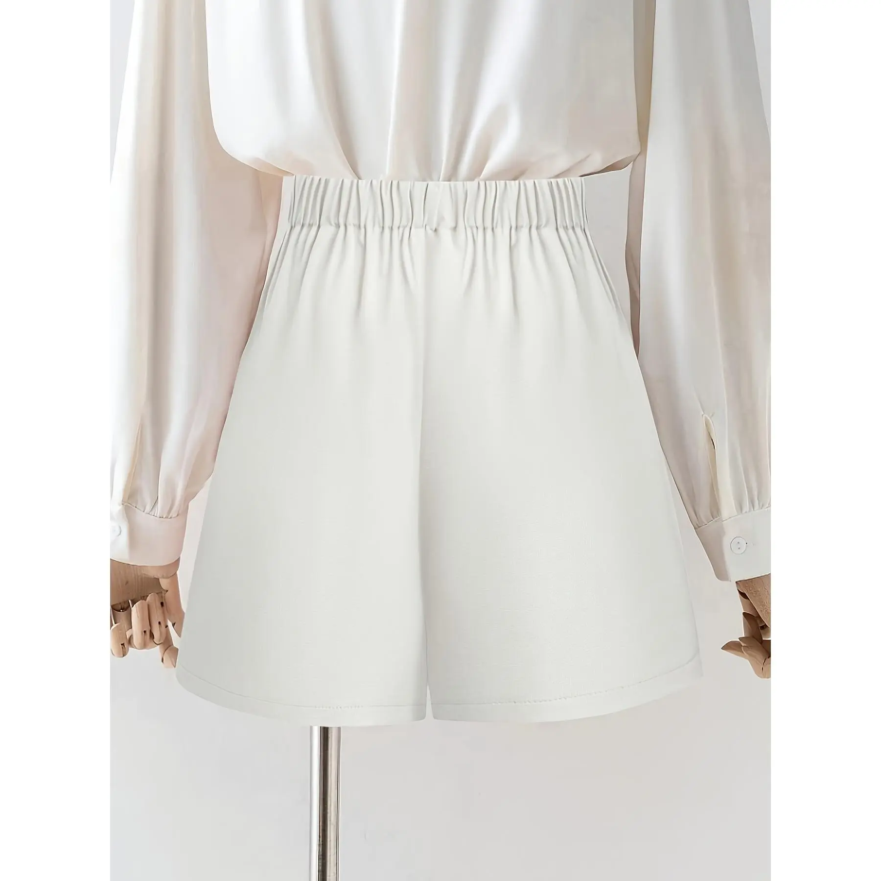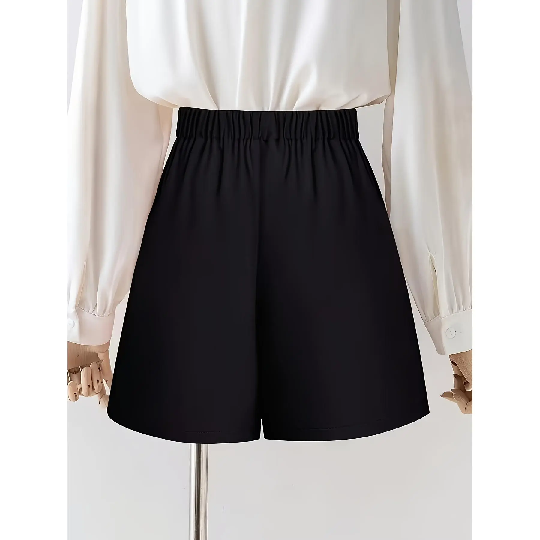 Plus Size Women's Fashion Elegant Shorts, High-Waisted Pleated Casual Daily Commute Elegant Shorts