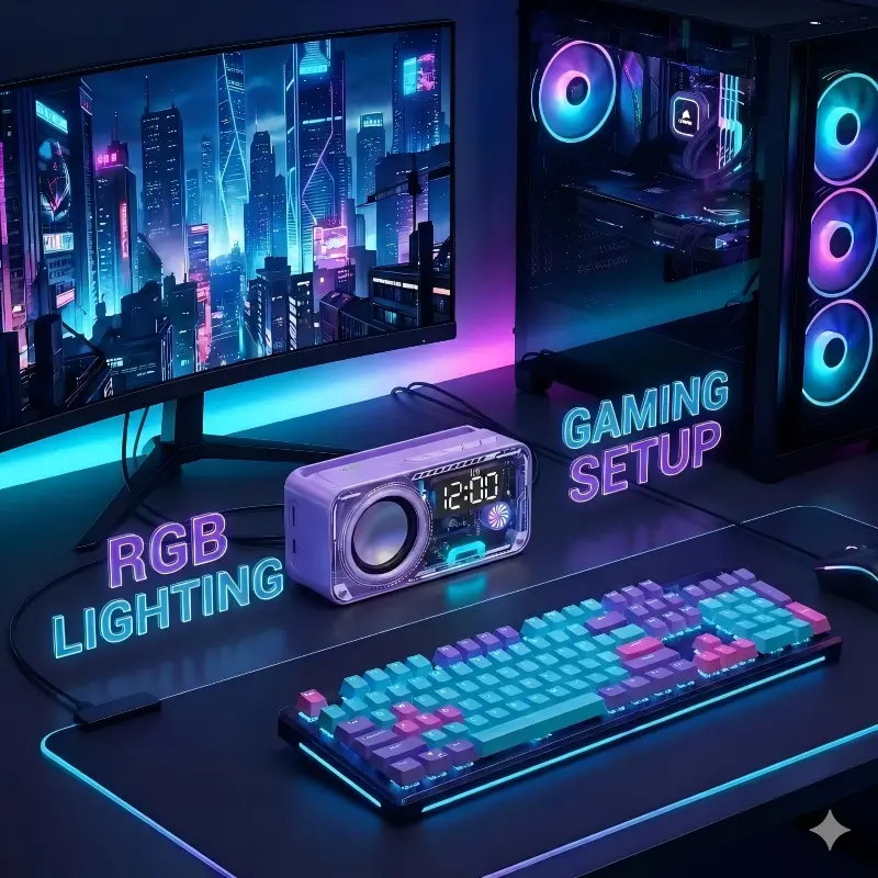Transparent Mech Wireless Bluetooth-compatible Speaker with Phone Stand, RGB LED Night Light, Portable Stereo Sound System, Long Battery, Perfect Gift