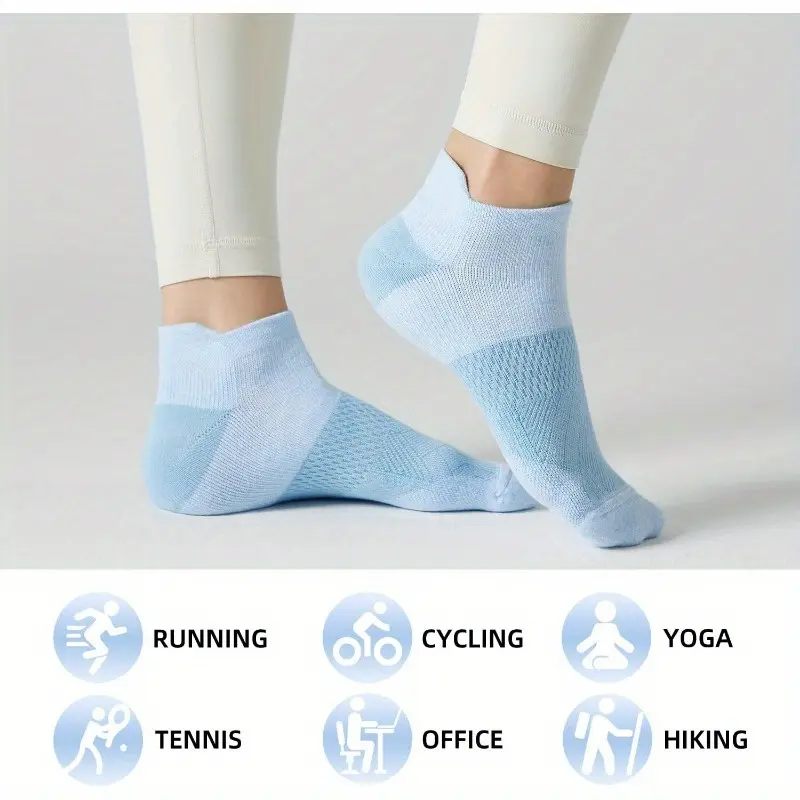 [5 Pairs Athletic Socks] 5 Pairs Women's Ankle Athletic Socks | Cushioned, Breathable Polyester, Low Cut Tab | All-Season Sports Socks for Running and Activities