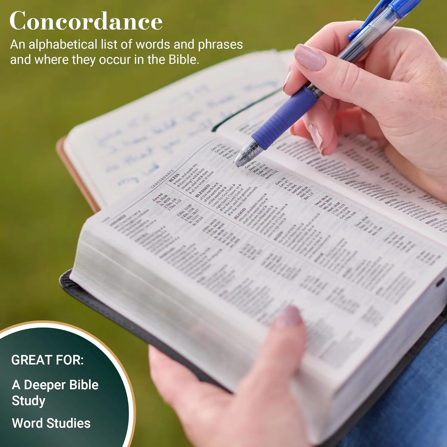 This Bible includes double-column formatting, 10-point type, a thematic Scripture verse finder, concordance, one-year reading plan, and eight full-color maps. Christ's words are highlighted in red ink for visual emphasis. The KJV translation remains precise, capturing historical nuances. It's a cherished choice for Bible study, offering easy navigation and swift access to favorite passages.