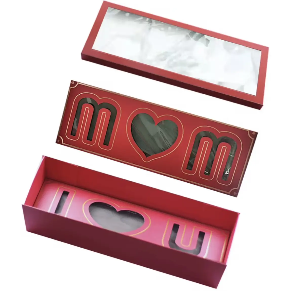 Cajitas Con Tapa Transparente Para El Dia de la Madre "I lOVE U" 3 Colores Gifts
