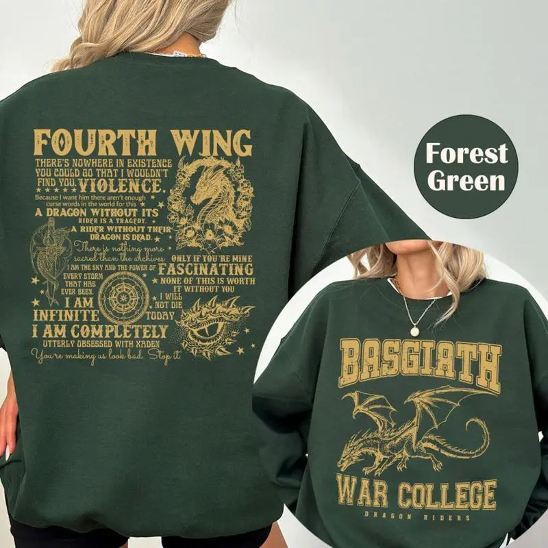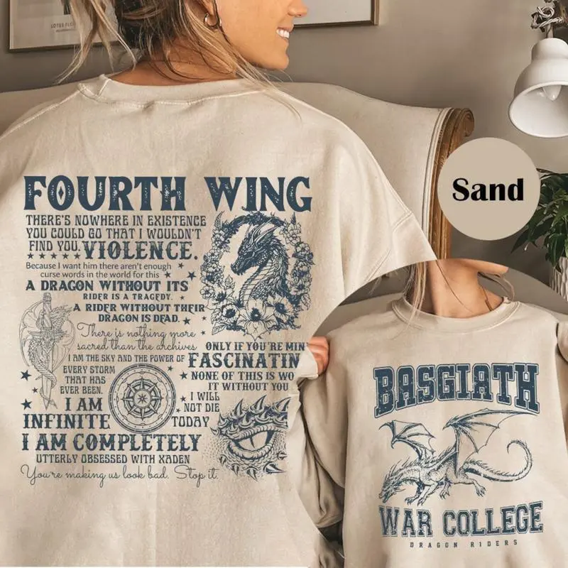 Fourth Wing 4 Legs Dragon Sweatshirt, Dragon Rider Shirt, Basgiath War College Shirt, Bookish Sweater, Book Lover Shirt, Vintage Fourth Wing College Sweatshirt