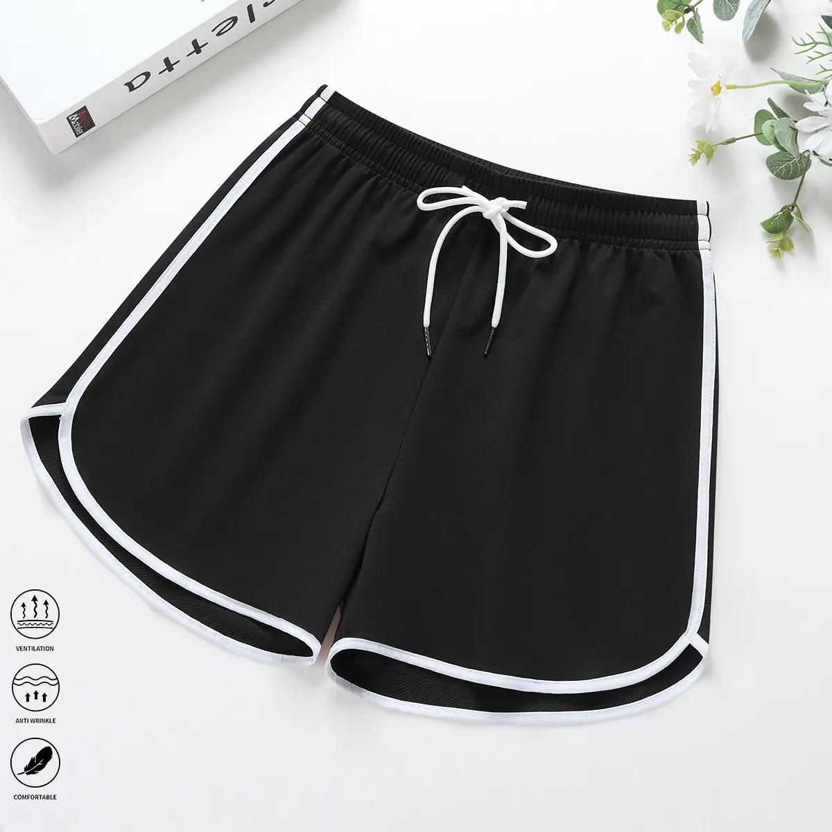 Women’s casual shorts, athletic shorts, lounge shorts, solid color, drawstring elastic waistband, suitable for casual wear and outdoor sports/yoga, women’s shorts, summer clothing