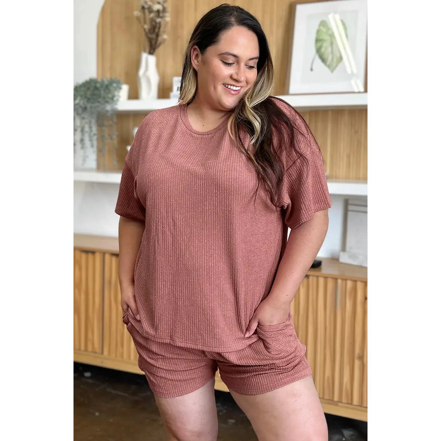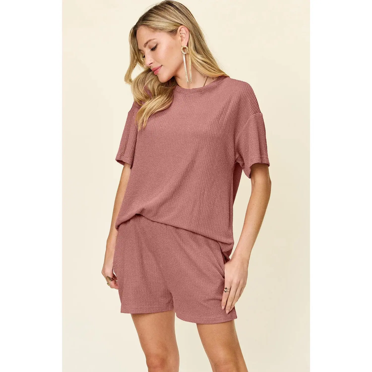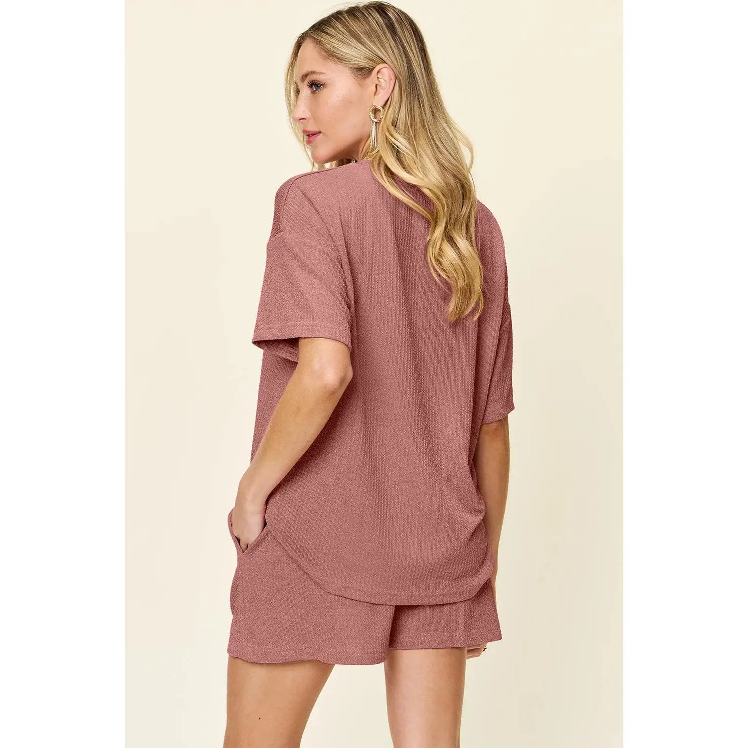 Double Take Full Size Round Neck Short Sleeve T-Shirt and Shorts Set