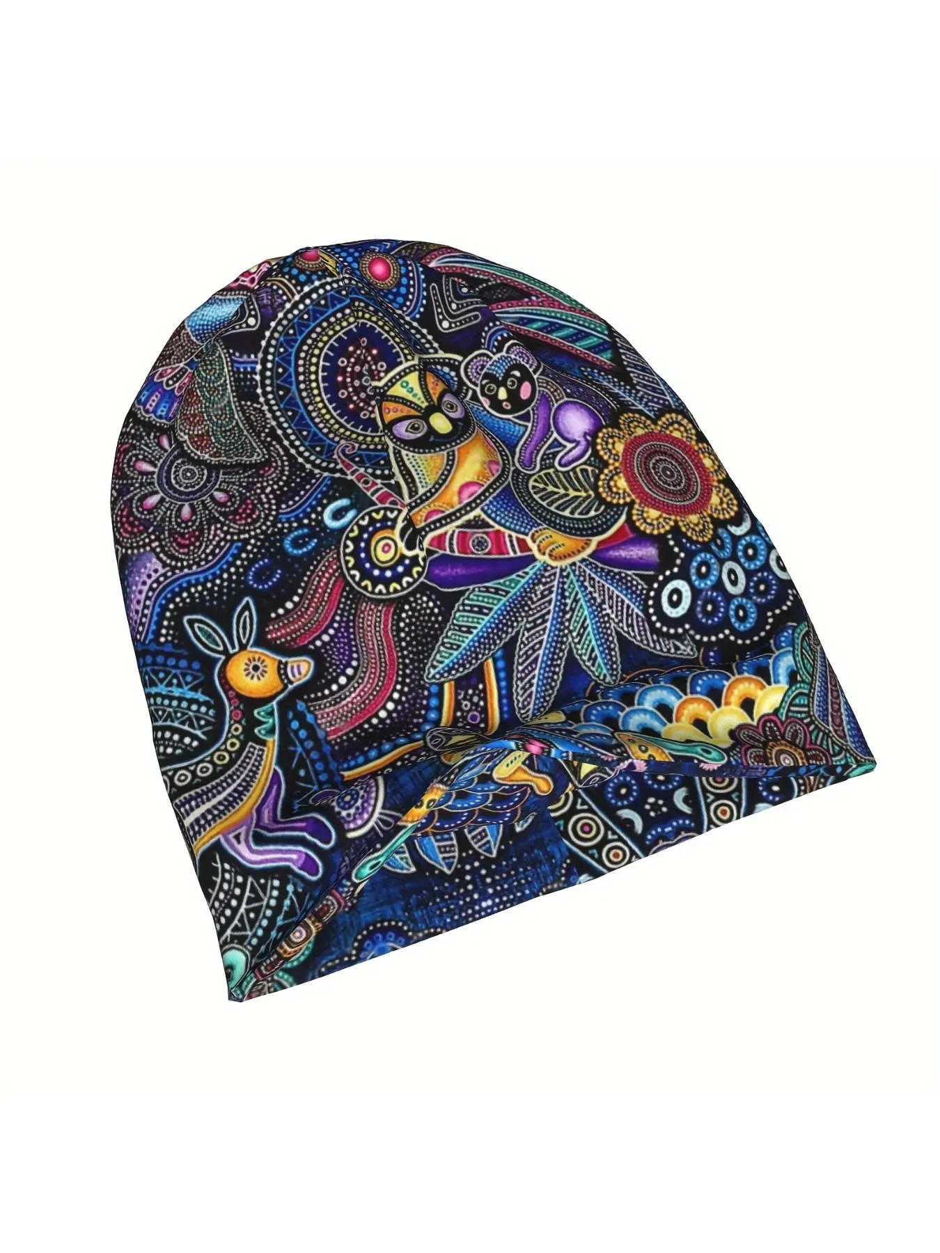 1pc Unisex African Tribal Print Knitting Beanie - Funky Style Knitted Polyester Hat with Elastane, Soft Fashion Bonnet for Men and Women