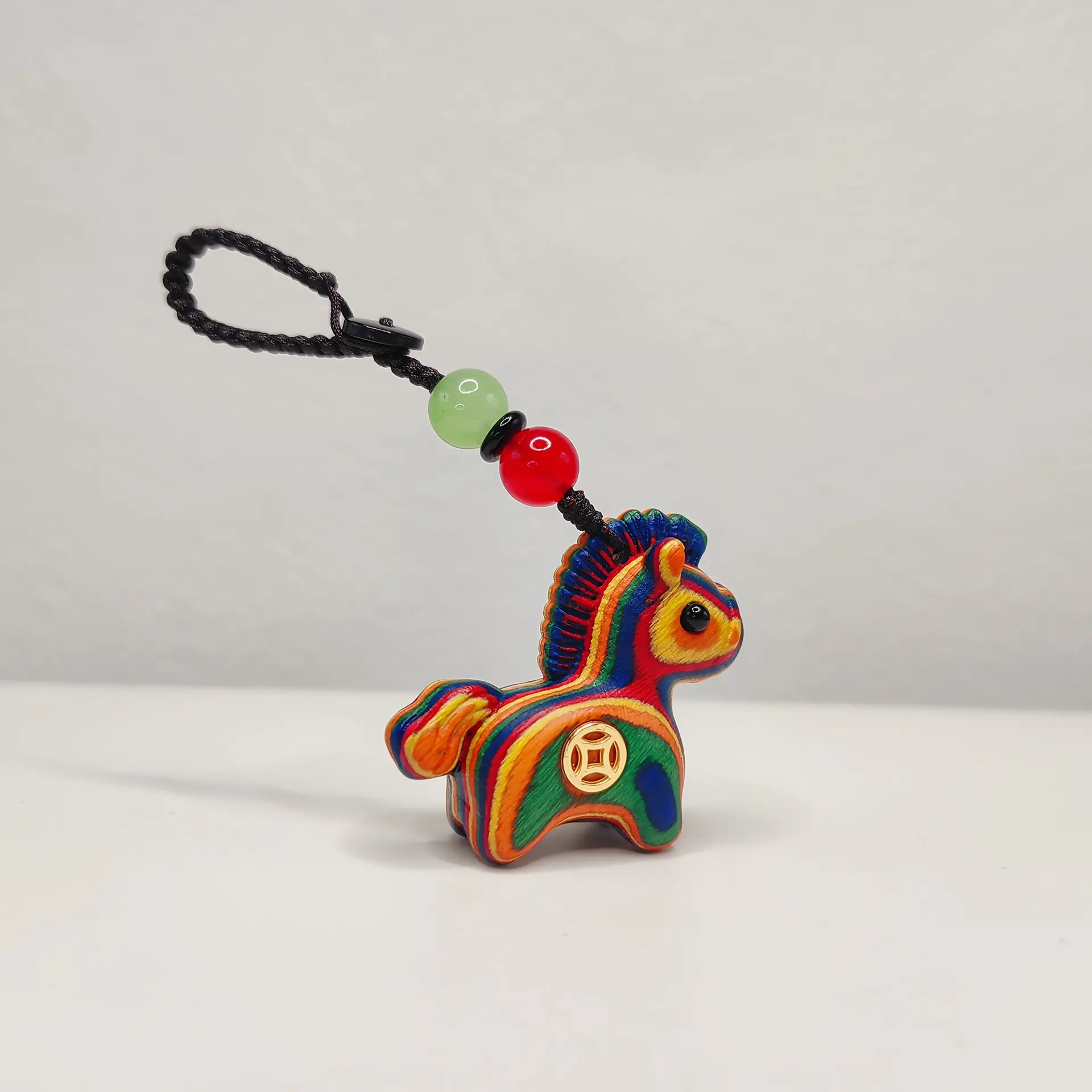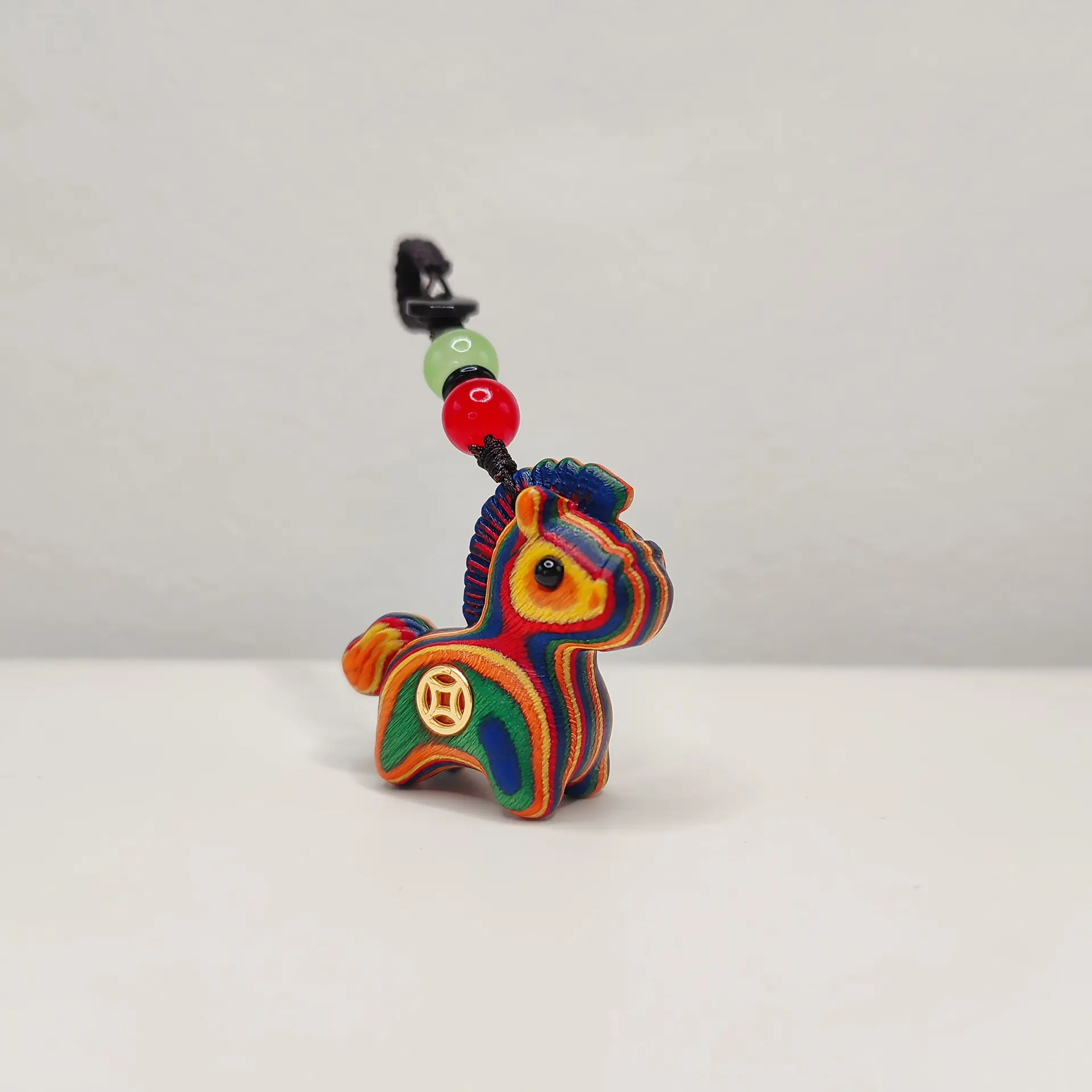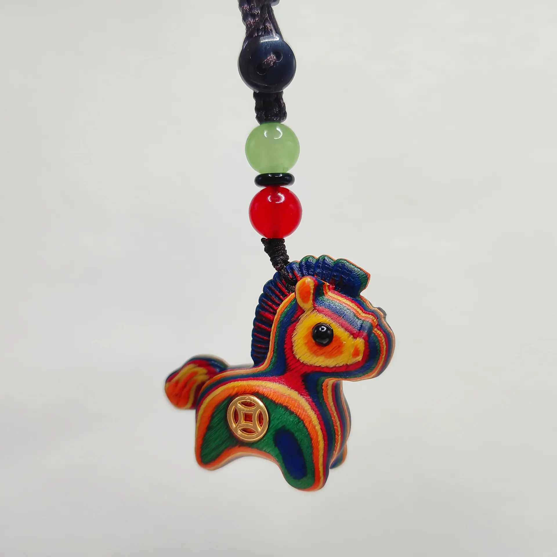 Elevate your style with this handcrafted Rainbow Wooden Horse Pendant! Carved from premium layered colored wood, it features a cute, vibrant pony design with a lucky Chinese coin charm, symbolizing wealth and good fortune. Strung with natural jade and agate beads on a durable cord, it’ s perfect as a necklace, bag charm, or car pendant, ideal for gifting and daily wear.