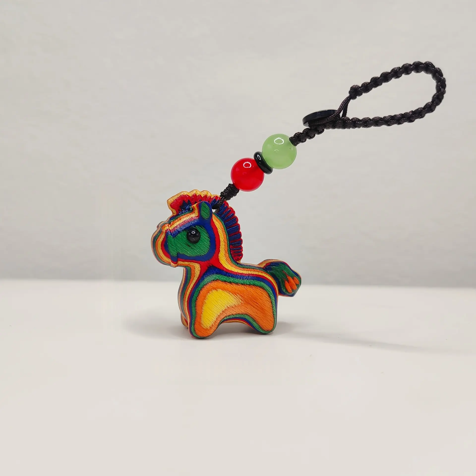 Rainbow Wood Carved Zodiac Horse Pendant Mobile Phone Chain Ornament Bag Decoration