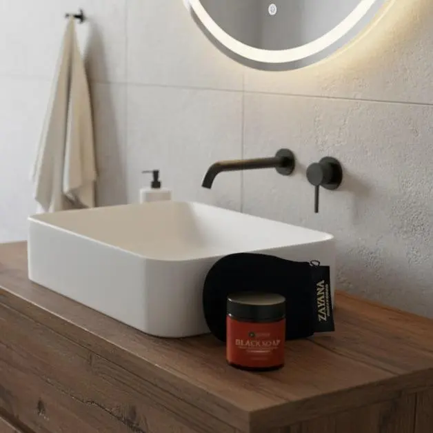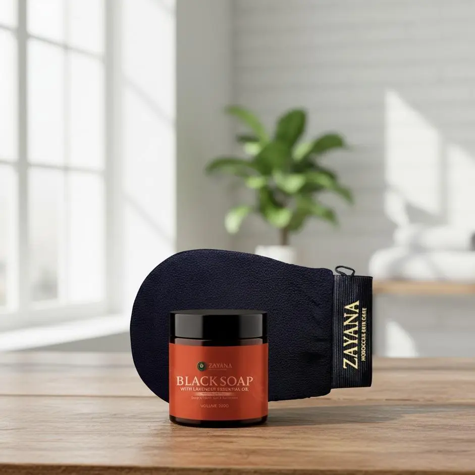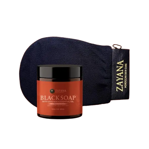 Discover the Zayana Moroccan Black Soap & Kessa Mitt Set