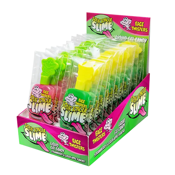 Get ready for a fun and sour candy experience with Face Twisters Sour Tongue Slime! This unique liquid candy comes in an easy-to-use squeeze tube, delivering a burst of tangy flavor with every drop.