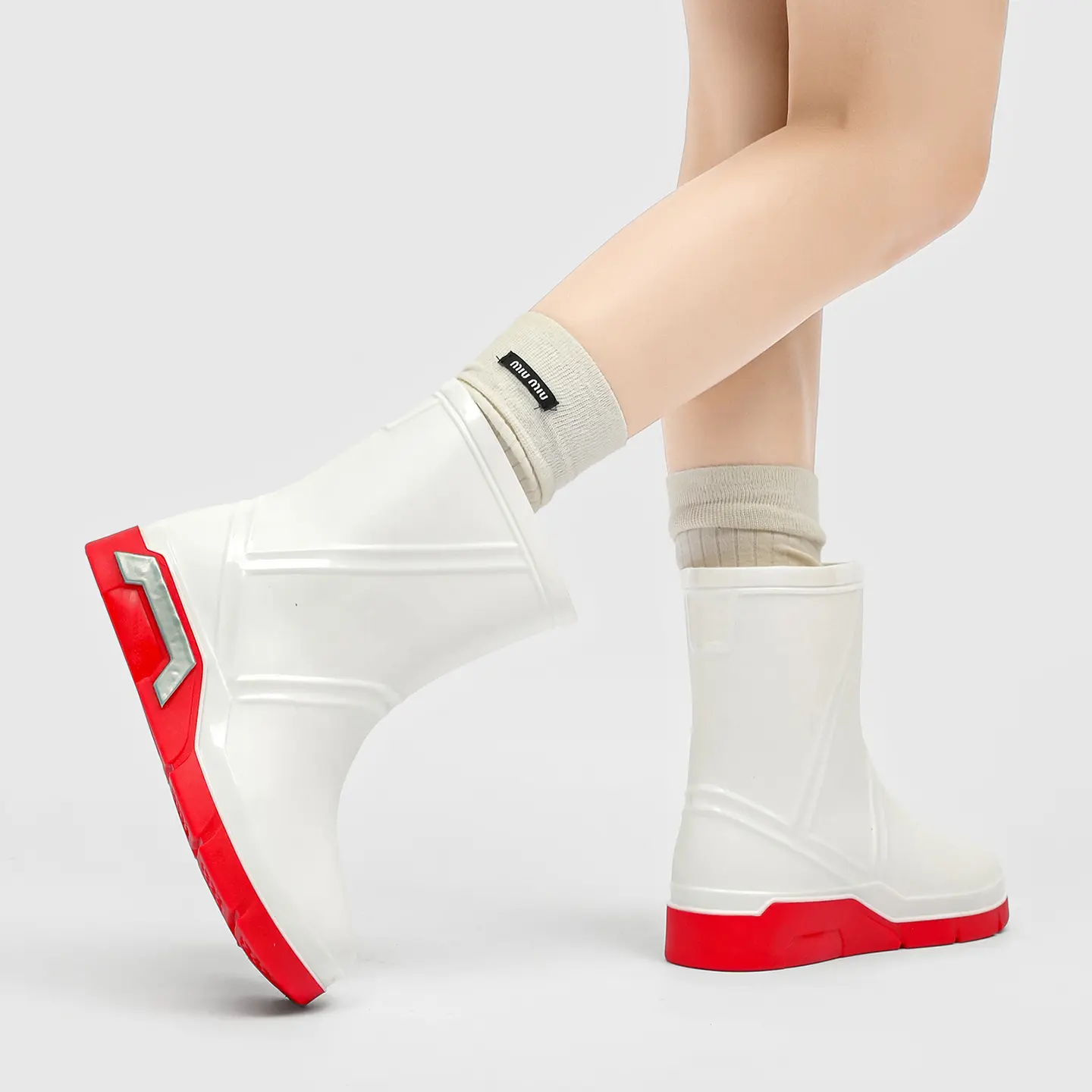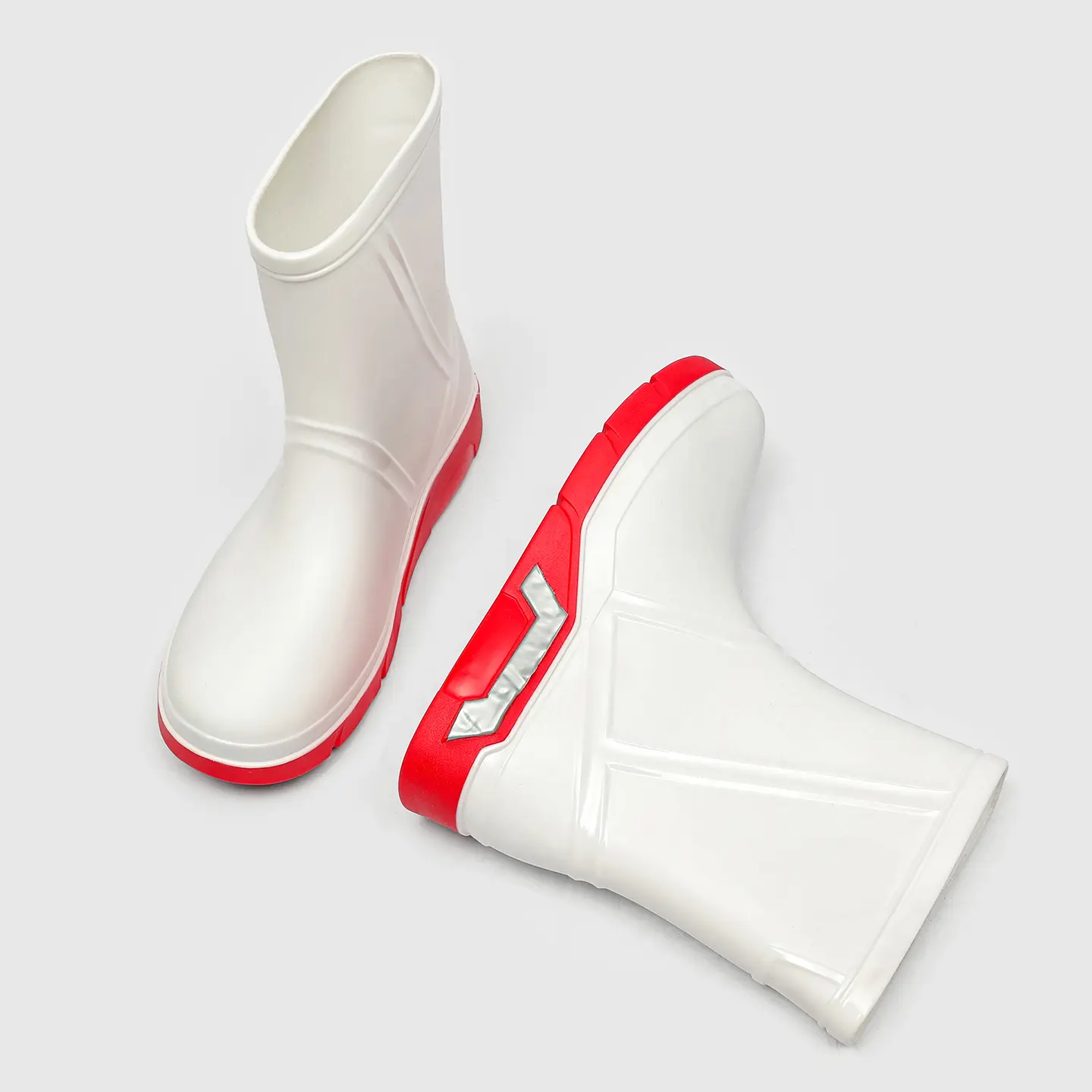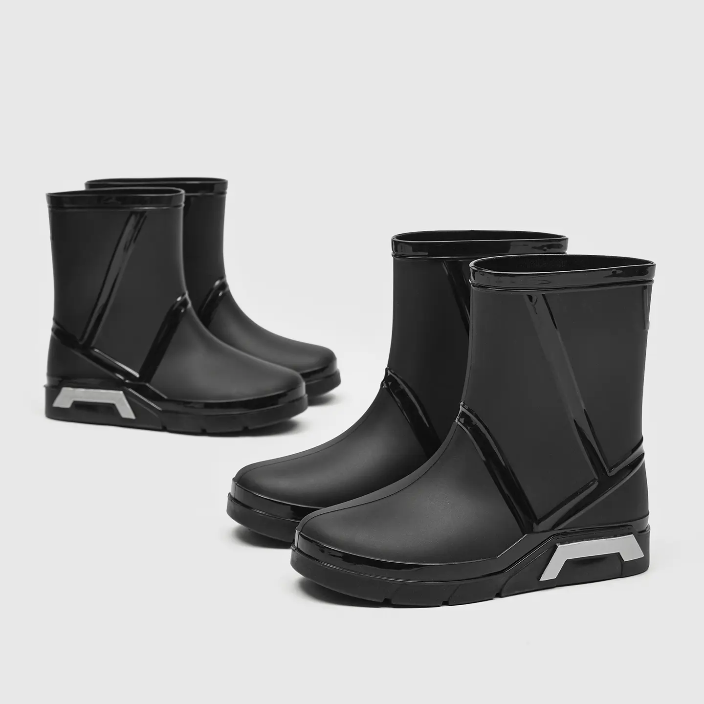 Looking for rain boots that look great and perform well? These fashionable mid-calf waterproof boots are your top choice. Available in black, white, and green; minimalist design with line details that create a glossy effect. Unique high heel details make the outerwear more eye‑catching. Suitable for commuting and outdoor wear. Full size range from 36 to 45; unisex design suitable for different foot types.