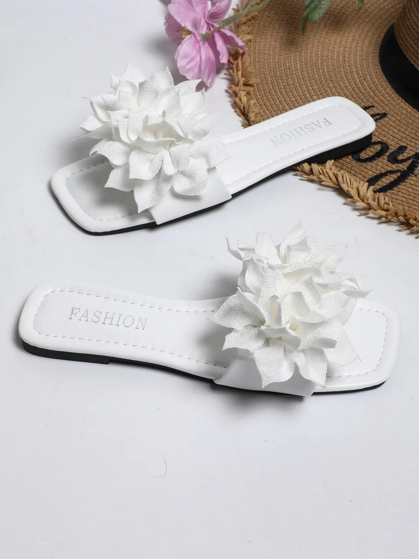 French Fairy Style 3D Flower Sandals, Square Toe Soft Sole, Comfortable for Daily Commute, Dating, Wedding, Perfect for All Occasions