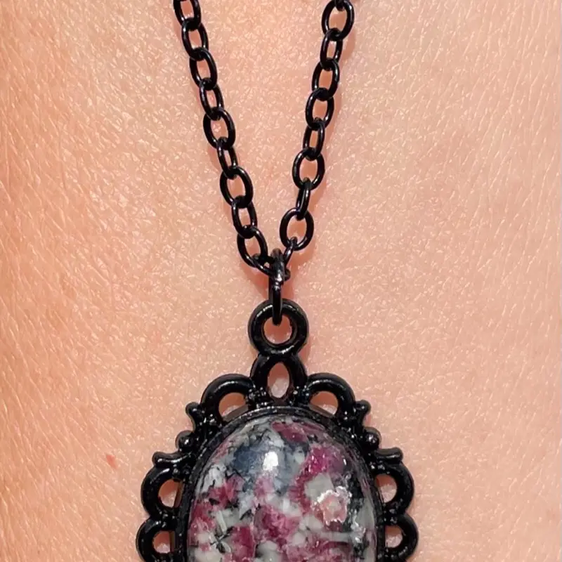 Eudialyte Crystal Necklace on 18 inch black hypoallergenic stainless steel chain