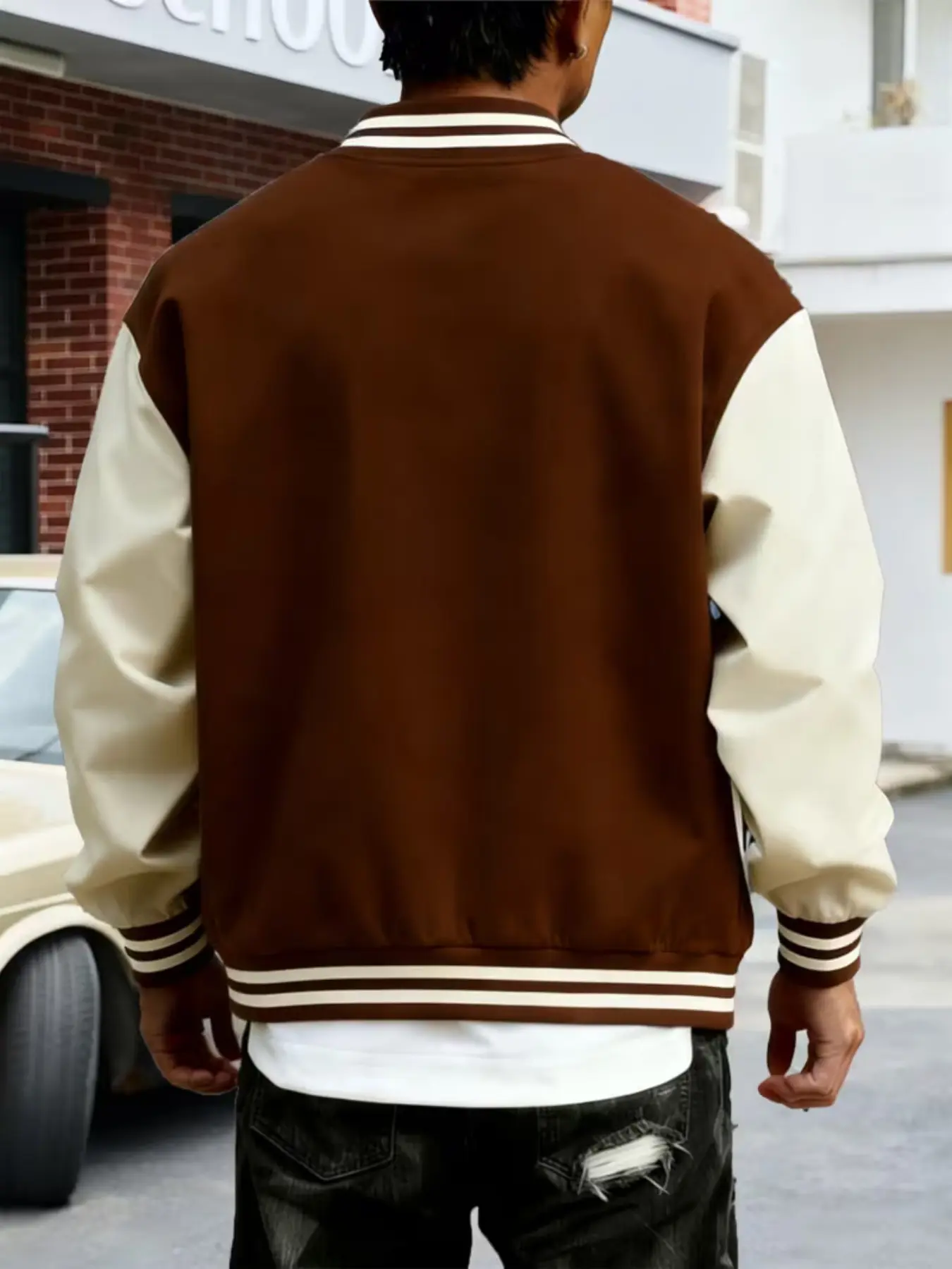 【Colorblock Sleeves】: Unique color contrast sleeves add visual interest and modern flair to the jacket.